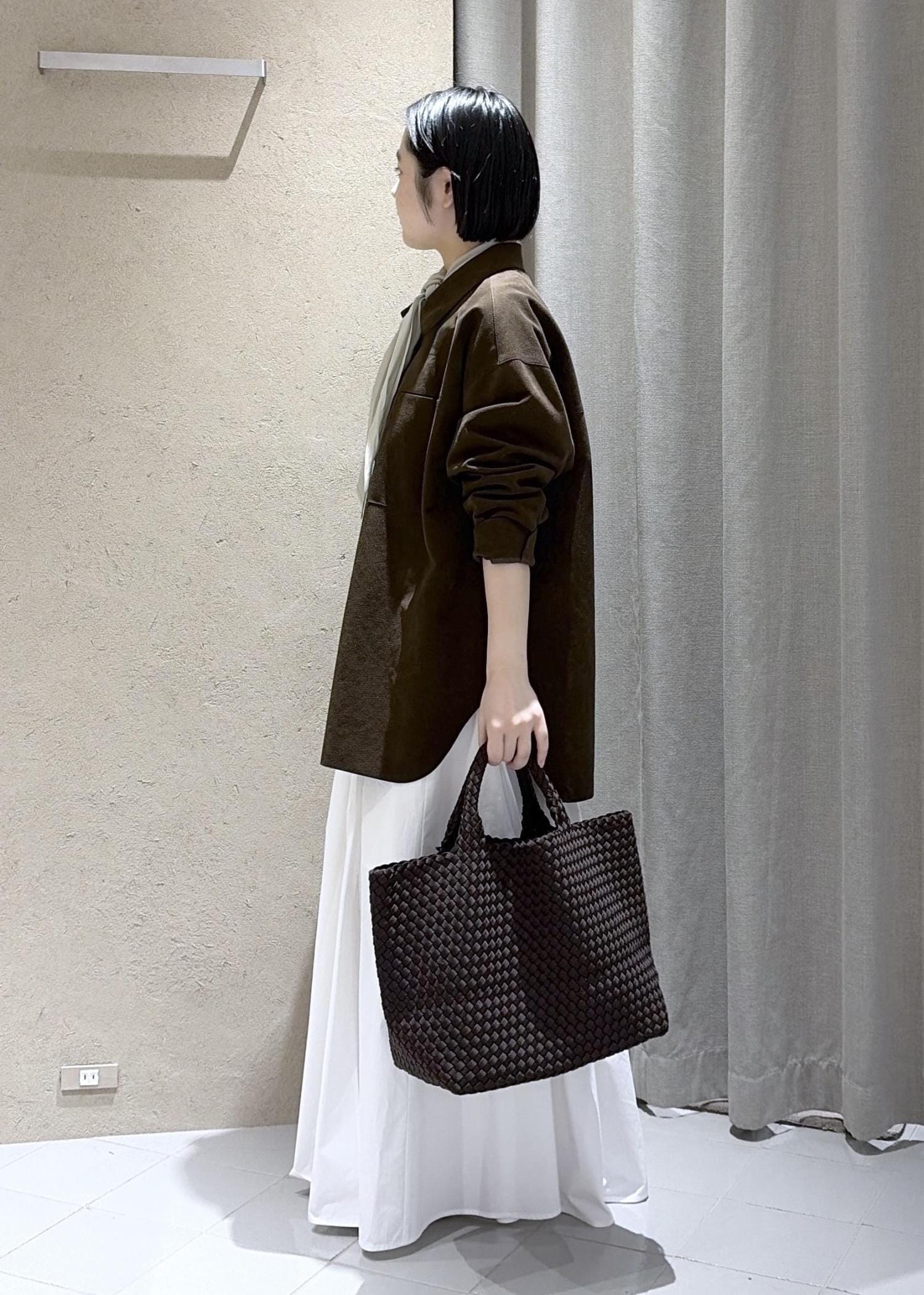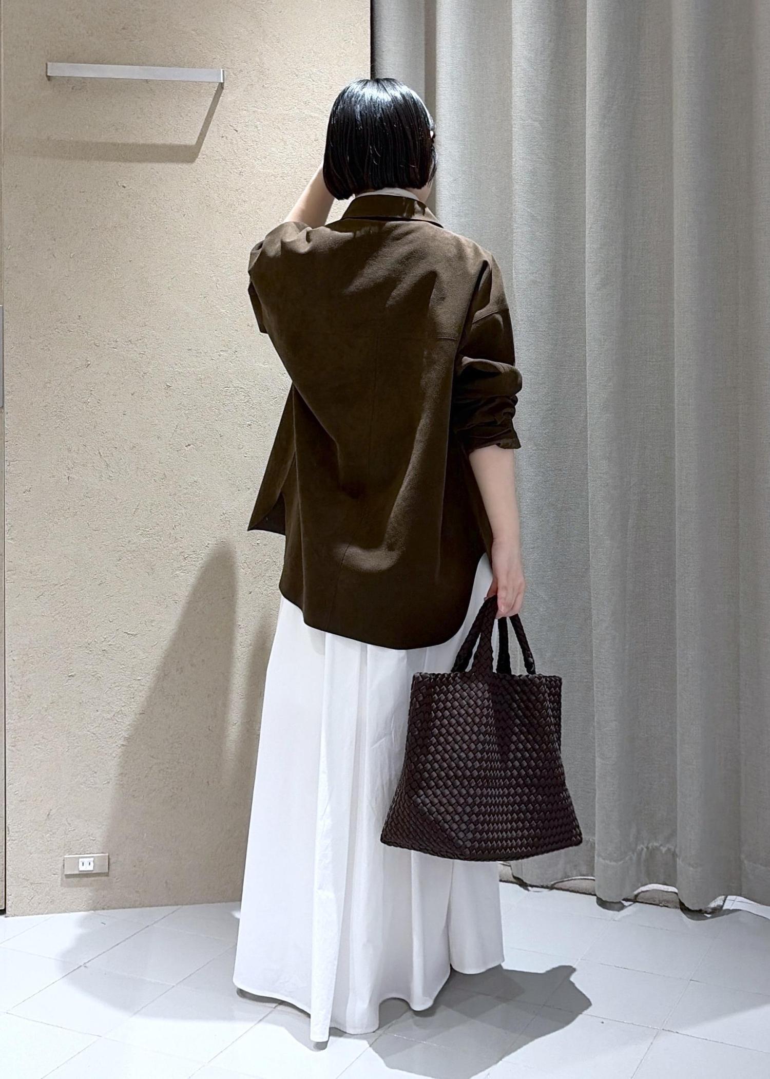 丈は長めですが、肩周りは大きすぎないので綺麗に着ていただけると思います。柔らかなスエード生地なので単体で着るのもおすすめですが、秋時期はアウター感覚で着るのもおすすめです。 -