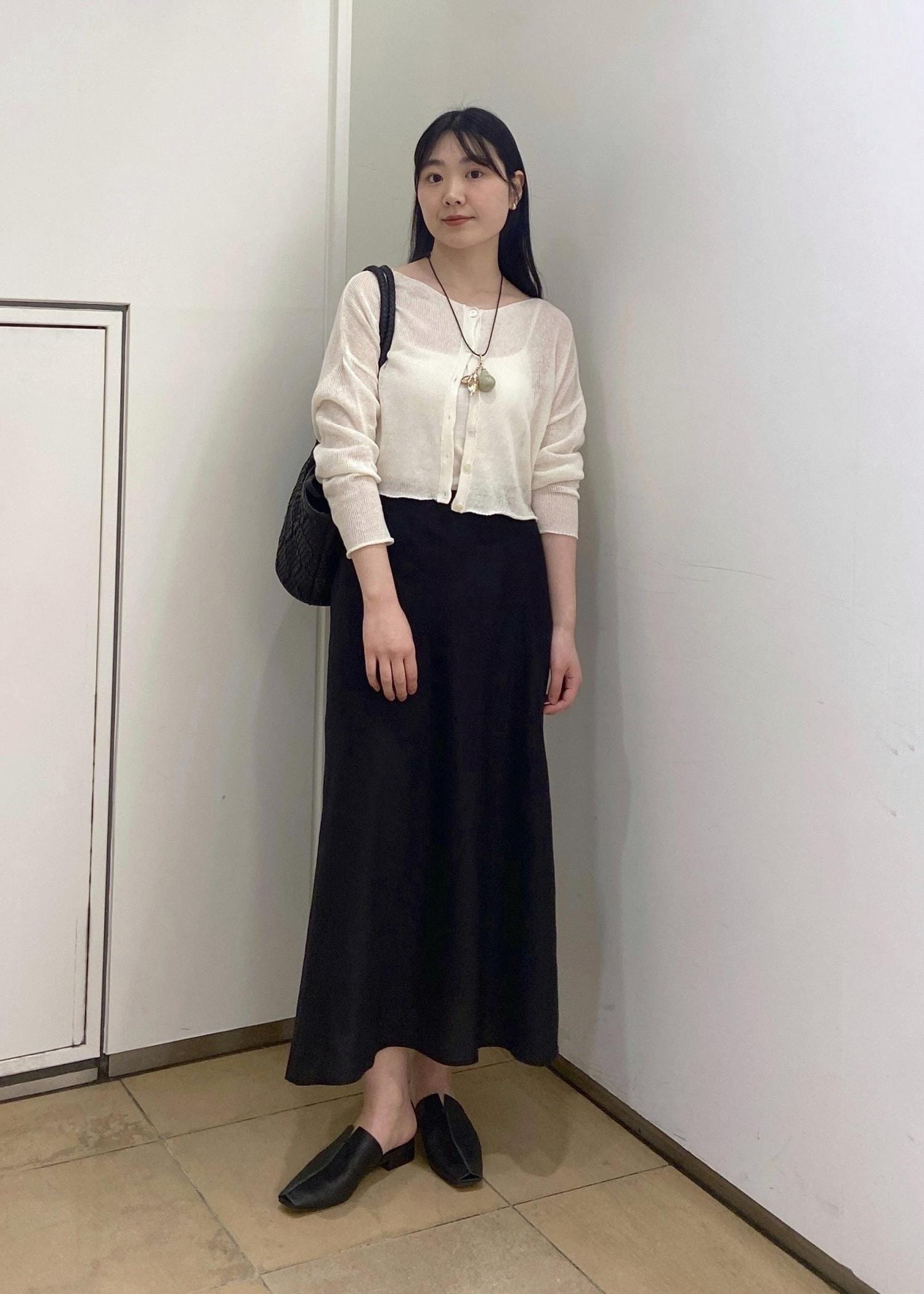 ネックスリットも大きく開かないので程よい肌見せで抜け感が出ます。
