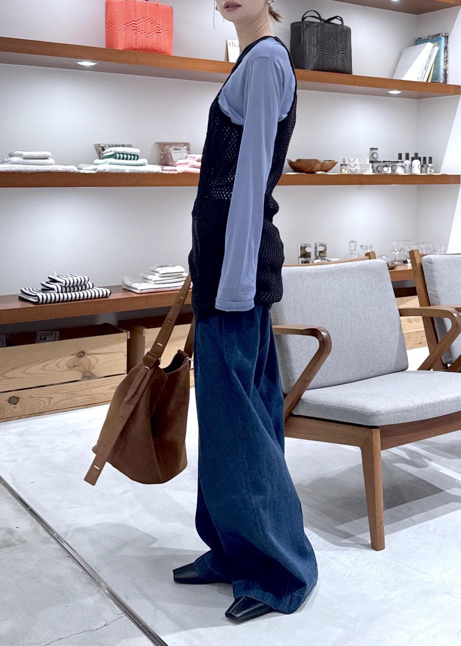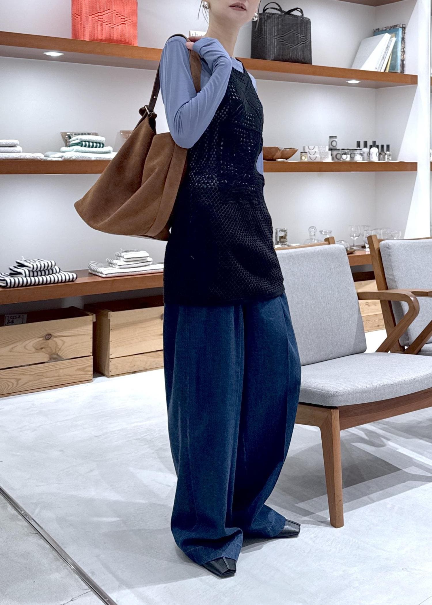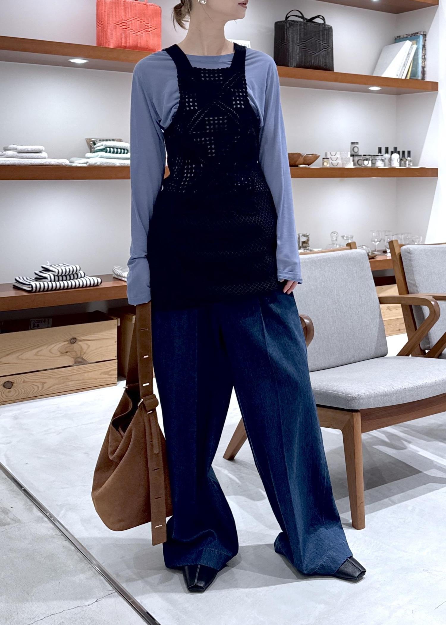 SALON adam et ropéデニムSTYLE UP TACK PANTSネイビー系 / M¥23,100レビュー165センチMサイズ着用。