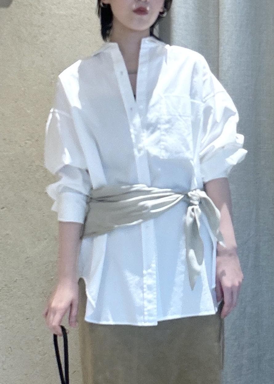 SALON adam et ropéオーバーダイコットンサテンシャツホワイト / F¥20,900レビュー着丈はヒップが隠れるほど。
