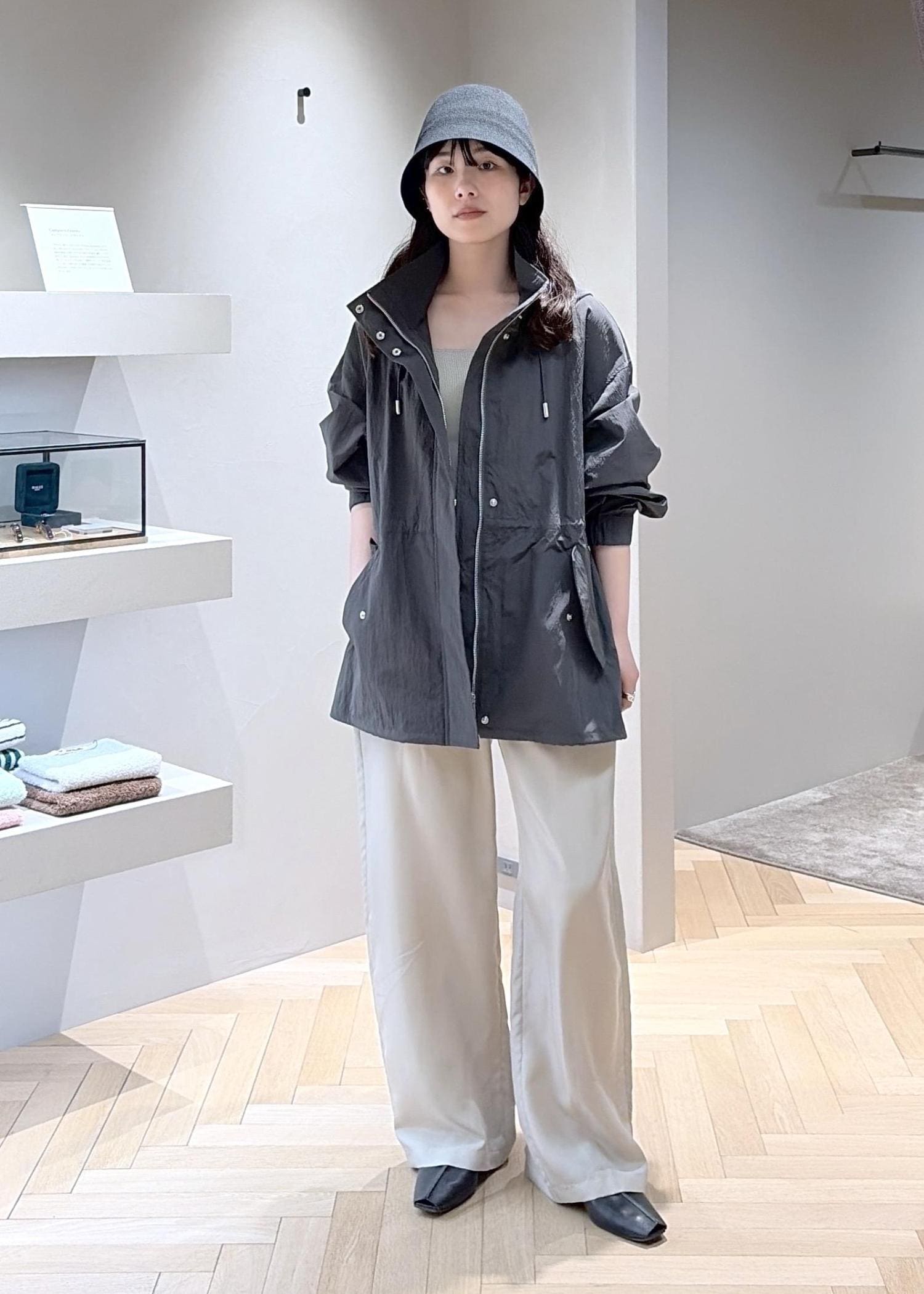 SALON adam et ropé【WEB限定】リップストップフードブルゾン/スタンドカラーマウンテンパーカー[軽量]チャコール / F¥20,900レビュー【サイズ感】