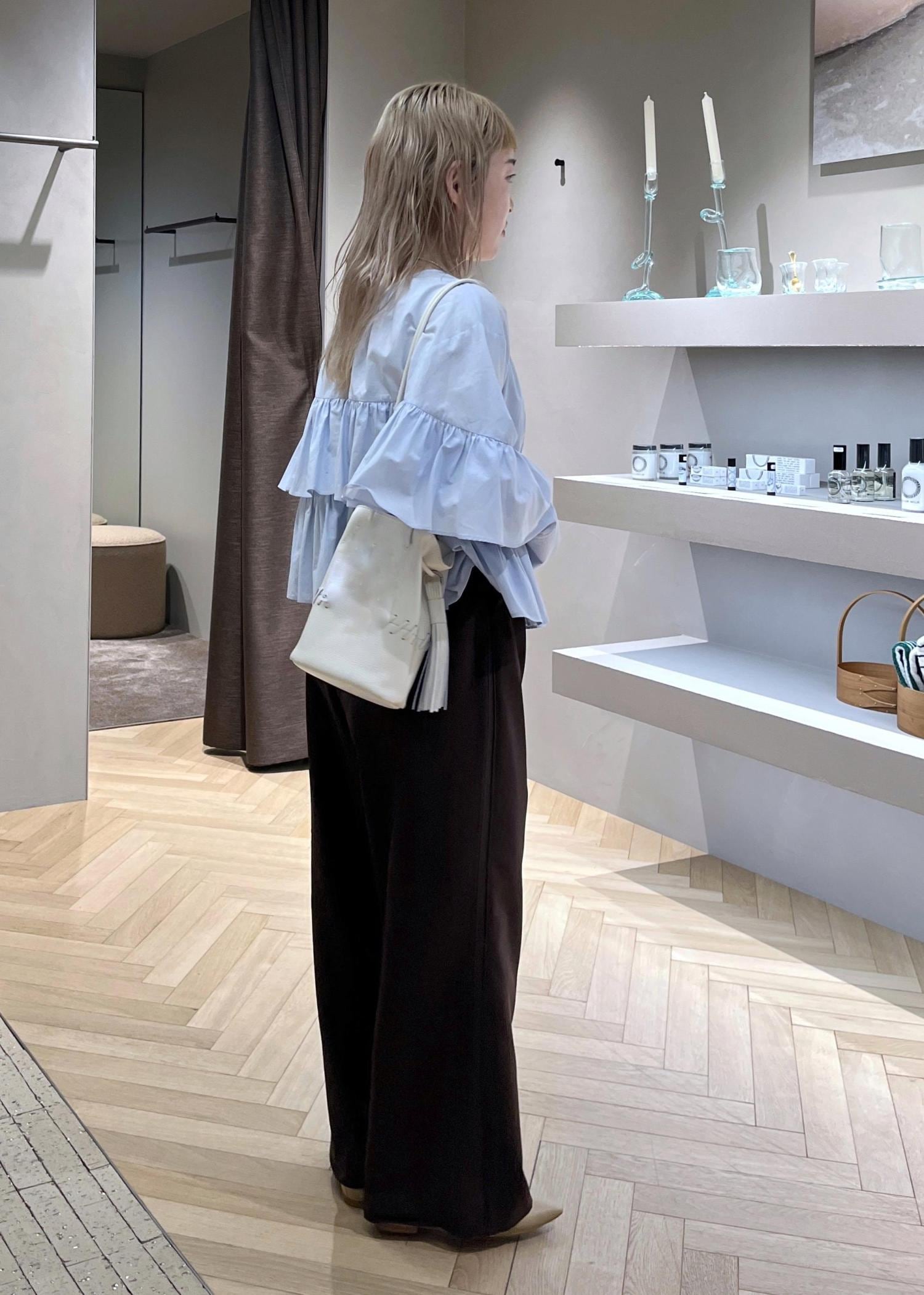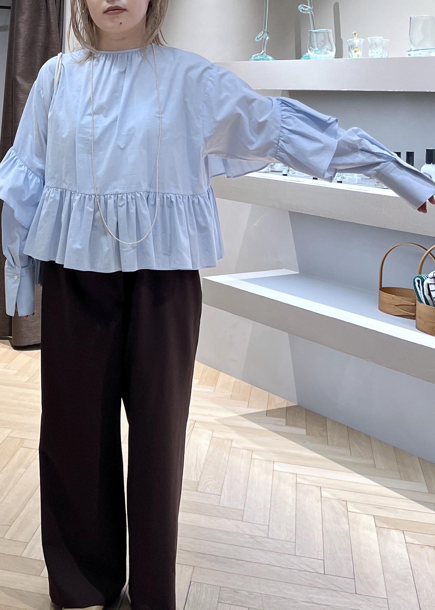 SALON adam et ropé【WEB限定】フリルギャザーブラウスサックス / F¥17,600レビュー腰骨上くらいの短丈。