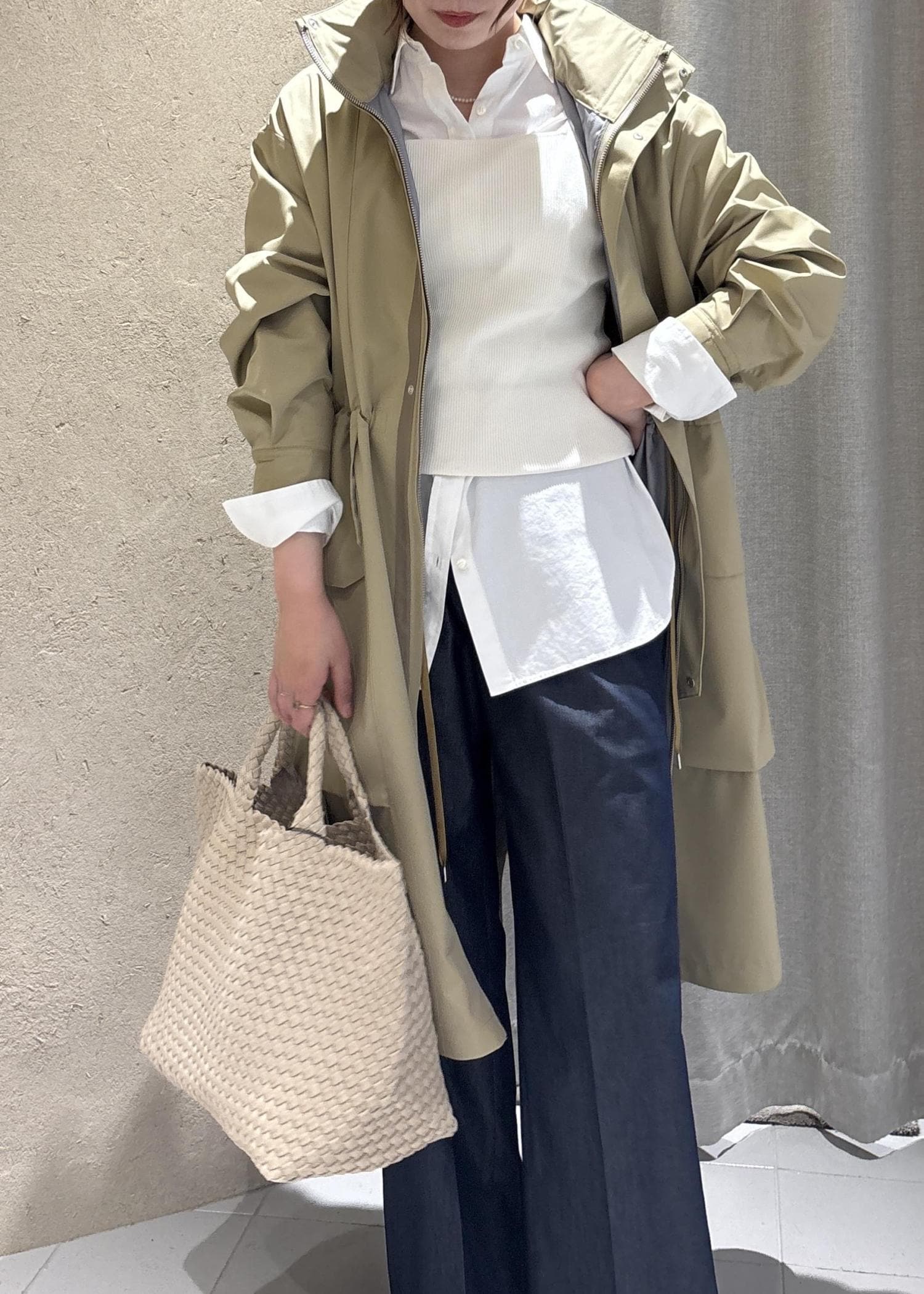 SALON adam et ropé3レイヤーミリタリーコート / KAJIFベージュ / F¥49,500レビューはっ水、防風機能が付いた春コートになります。冬から春の境目で着やすいデザインなのに加えて、梅雨時期にも活躍してくれます!