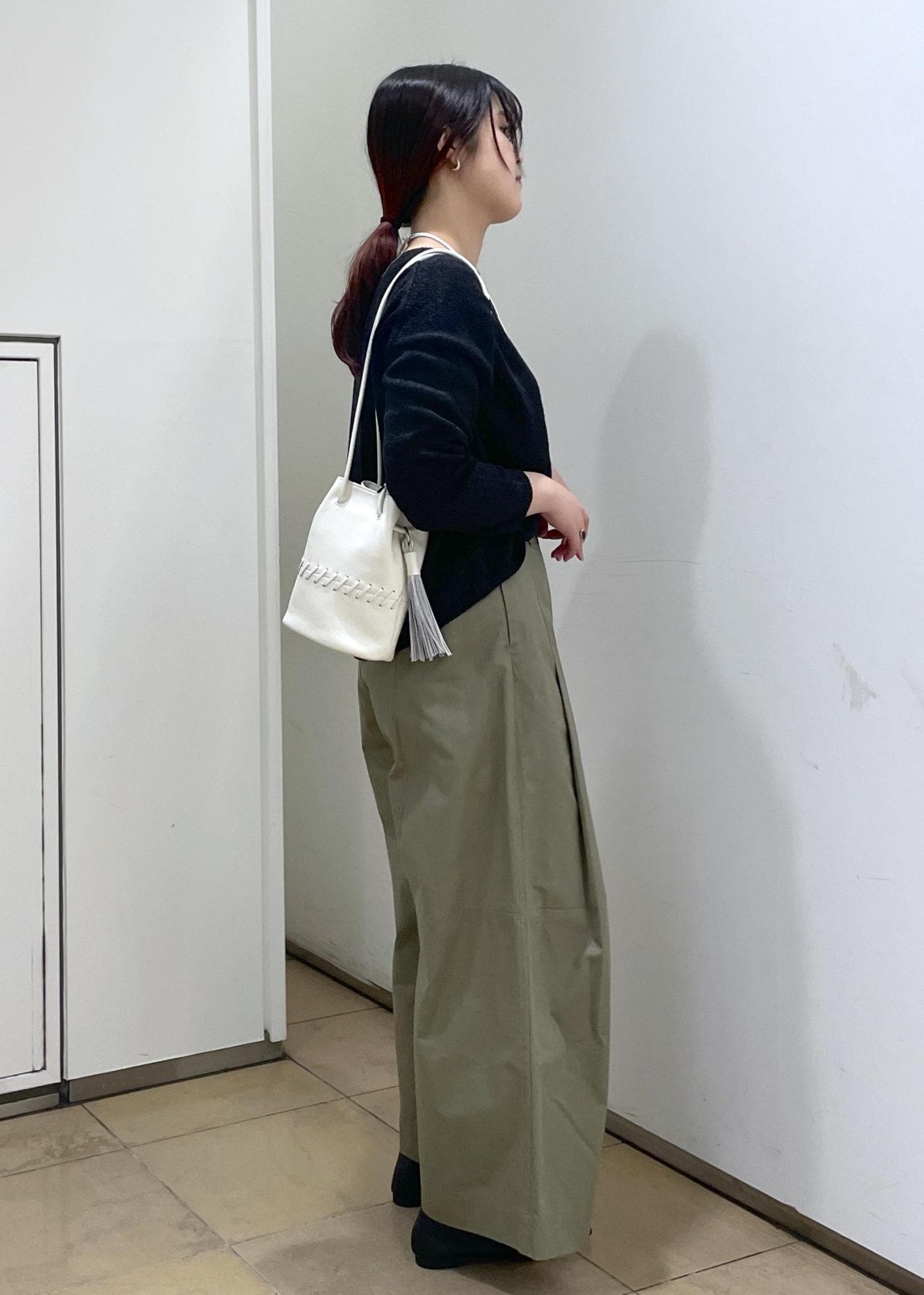 ハリのある素材で、かなりワイドなので立体感のあるパンツです。