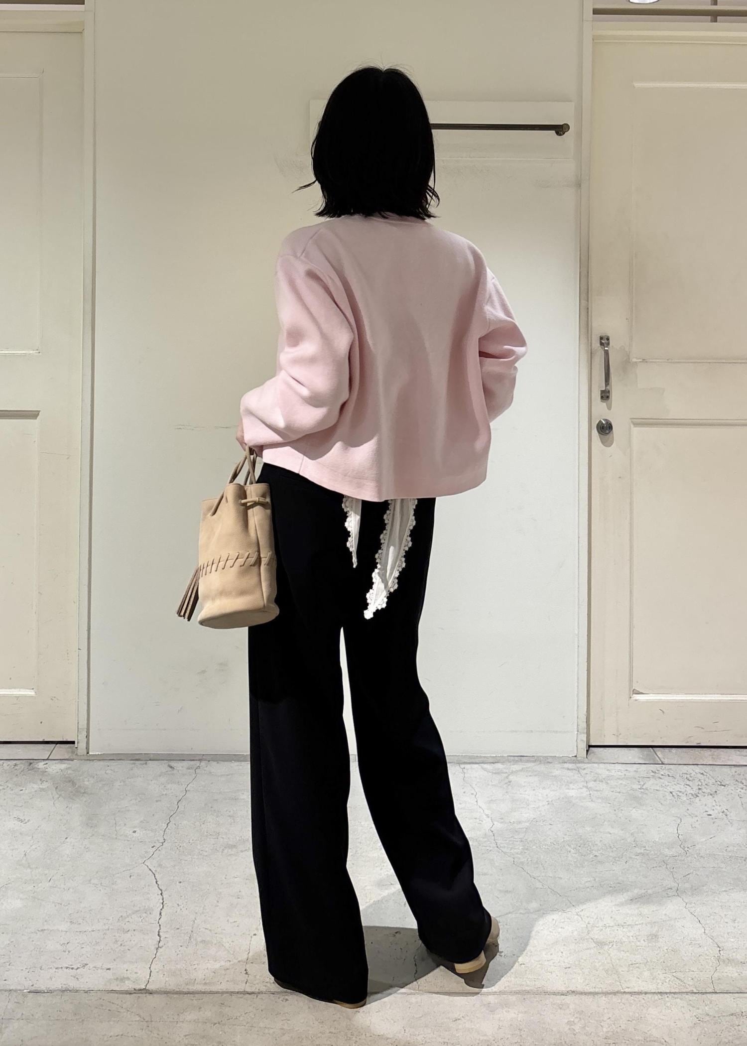甘くなりがちなピンク×レースですが、サロンのアイテムだと大人の春コーデにまとまります♪