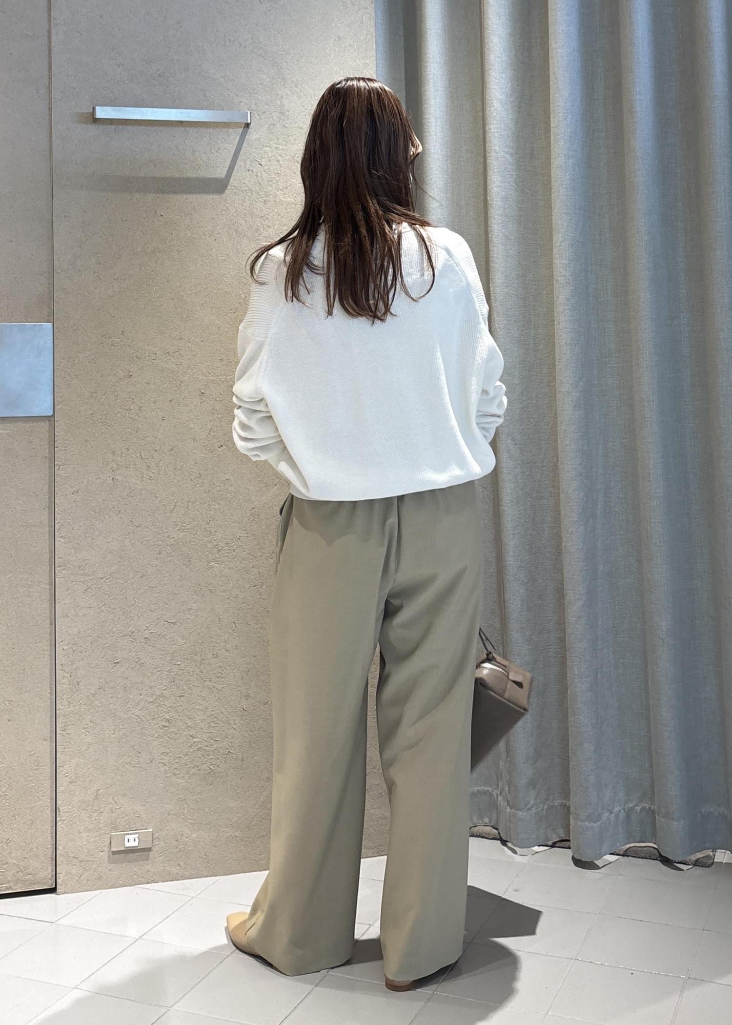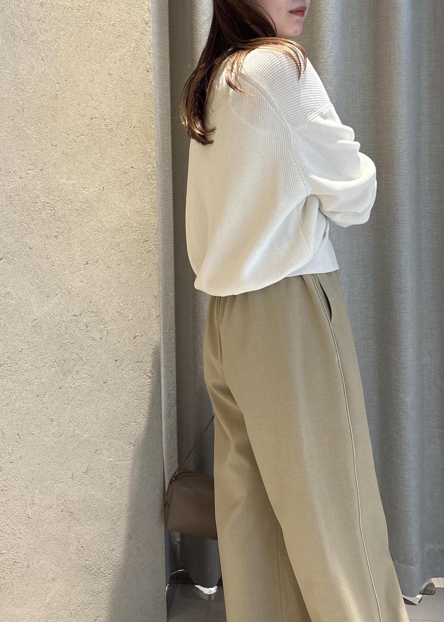 予約SALON adam et ropé【Americana(アメリカーナ) for SALON】ワイドパンツ/セットアップ対応ベージュ / F¥23,100レビューウエストゴムですがすっきりバランス良く履けるパンツです。シワになりにくい素材なのも嬉しく、どんなトップスとも相性抜群です⚪︎