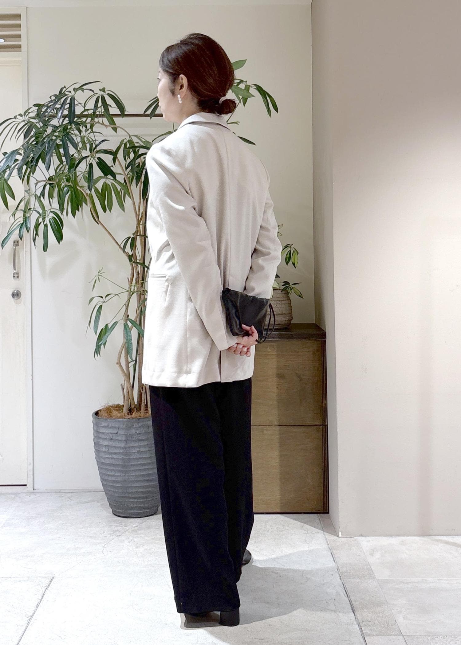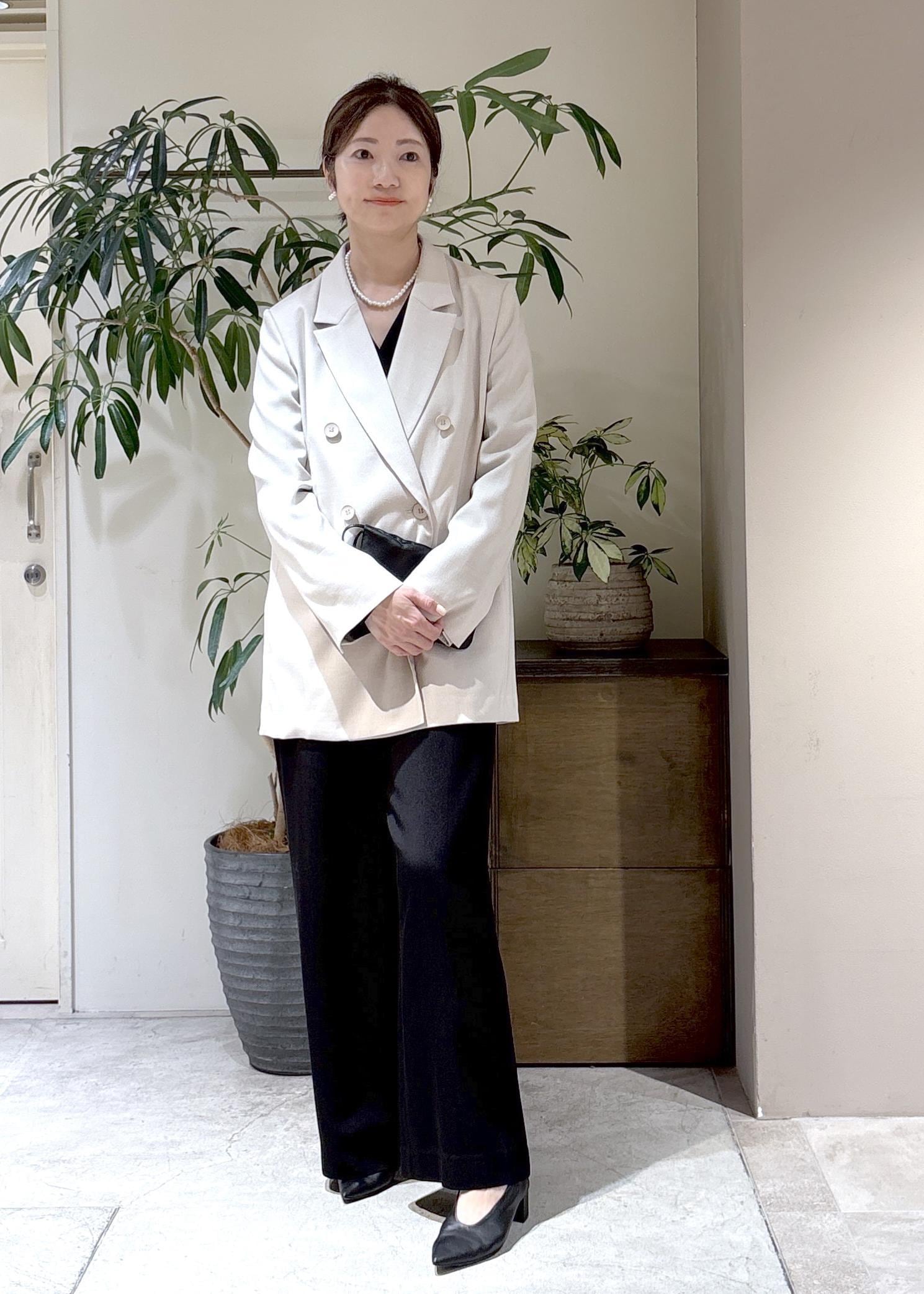 白ジャケットだと華やかすぎる…という方には、ベージュがおすすめ。