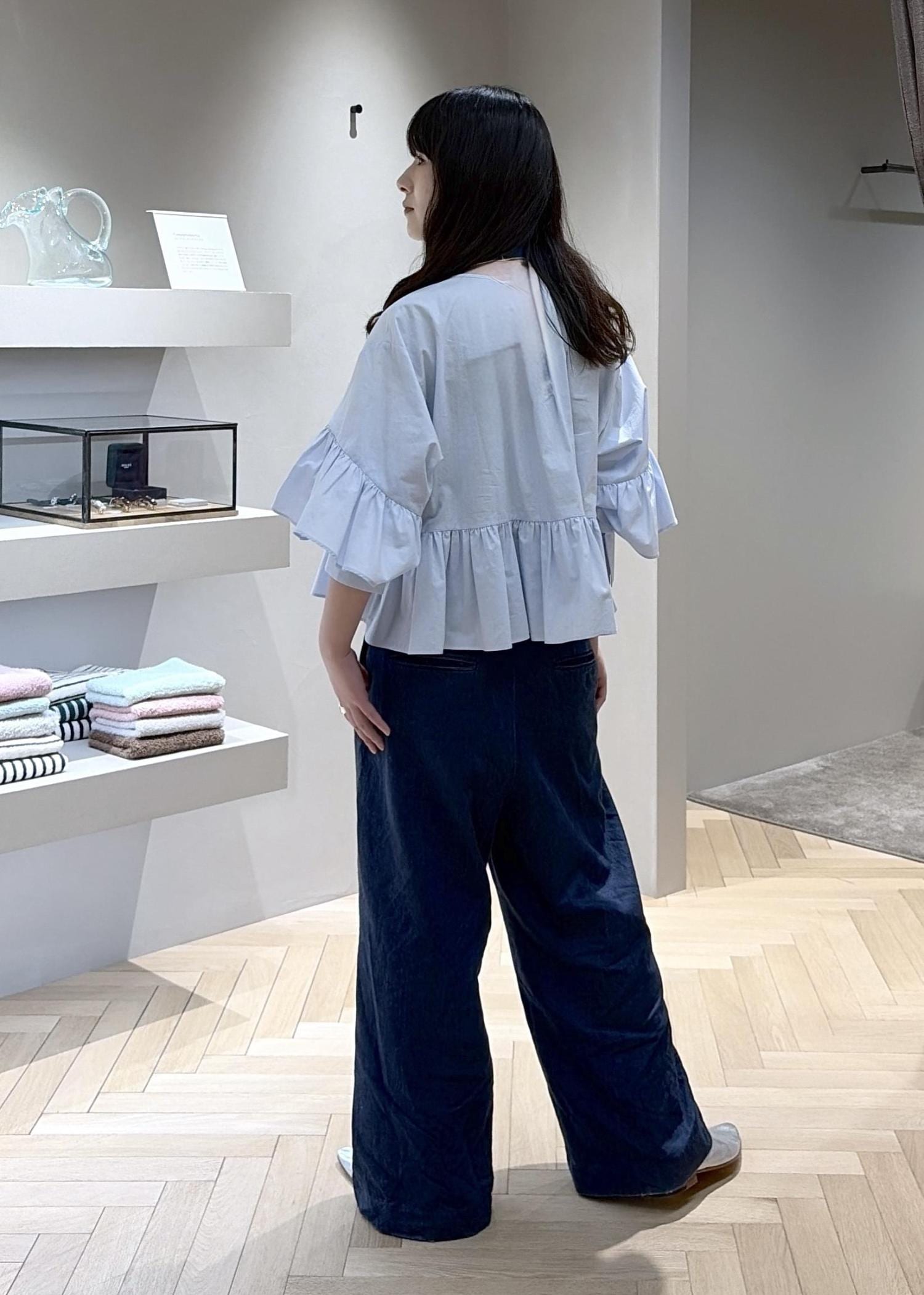 SALON adam et ropé【WEB限定】フリルギャザーブラウスサックス / F¥17,600レビュー【サイズ感】