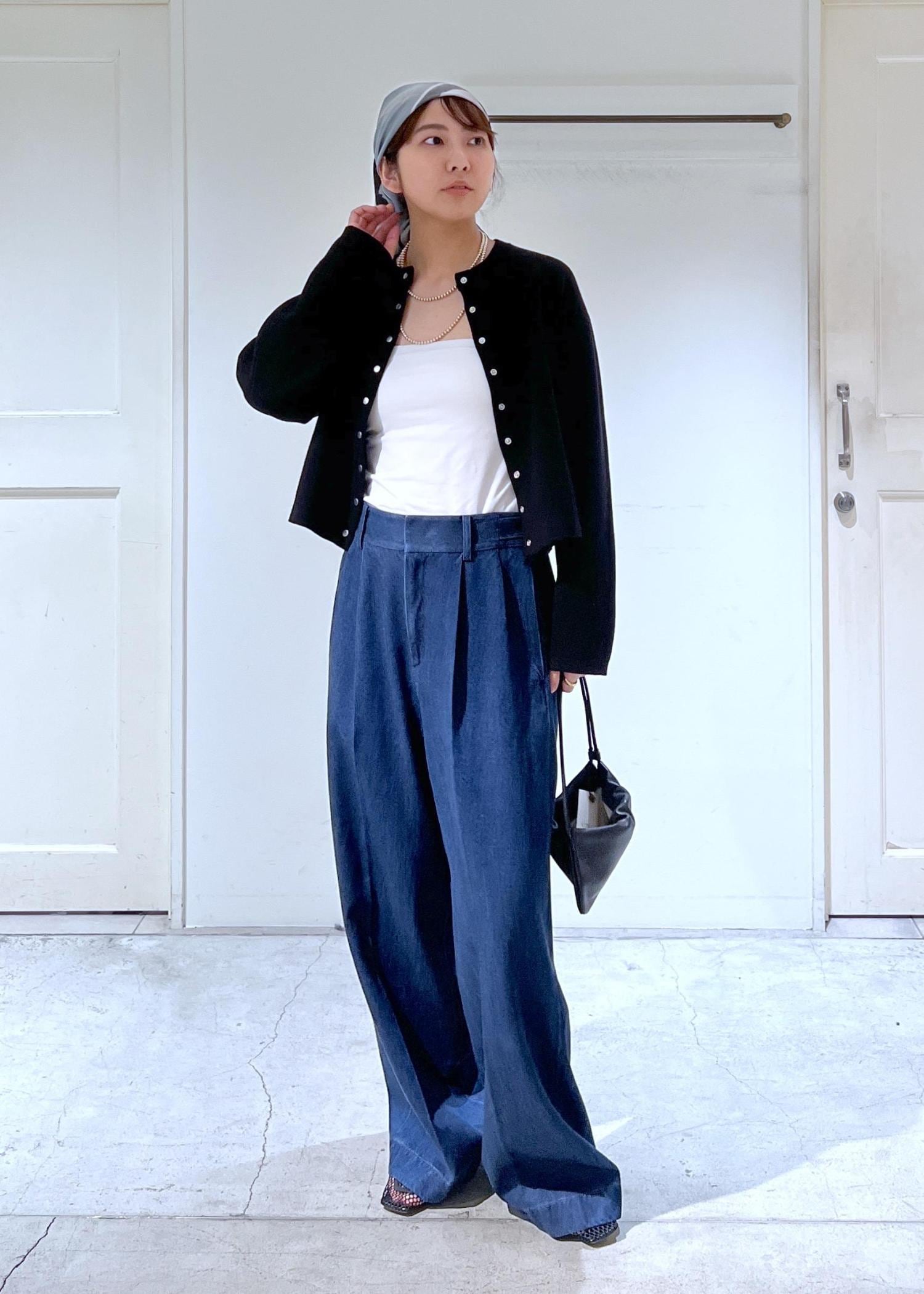 足元ですこし肌見せをしたり、柔らかいカラーのスカーフをポイントに持ってきたり、コーディネートにも軽さを意識してみました!