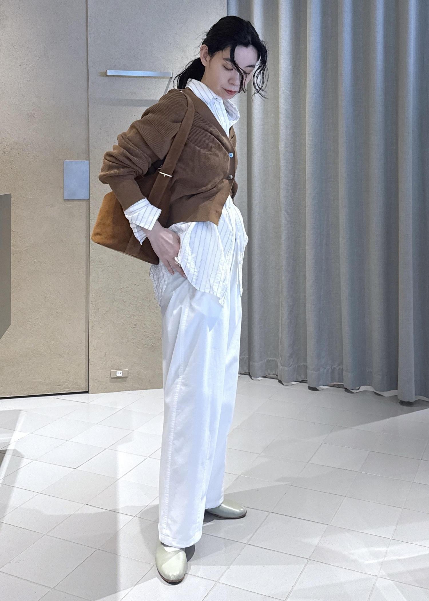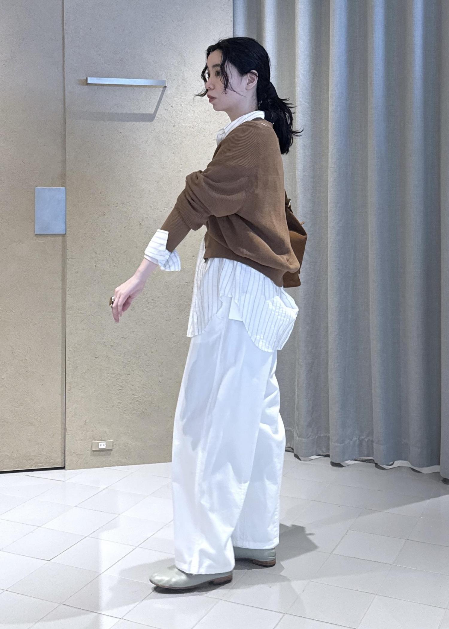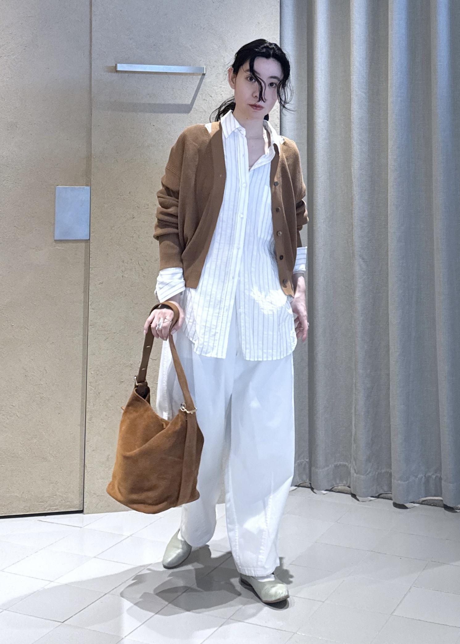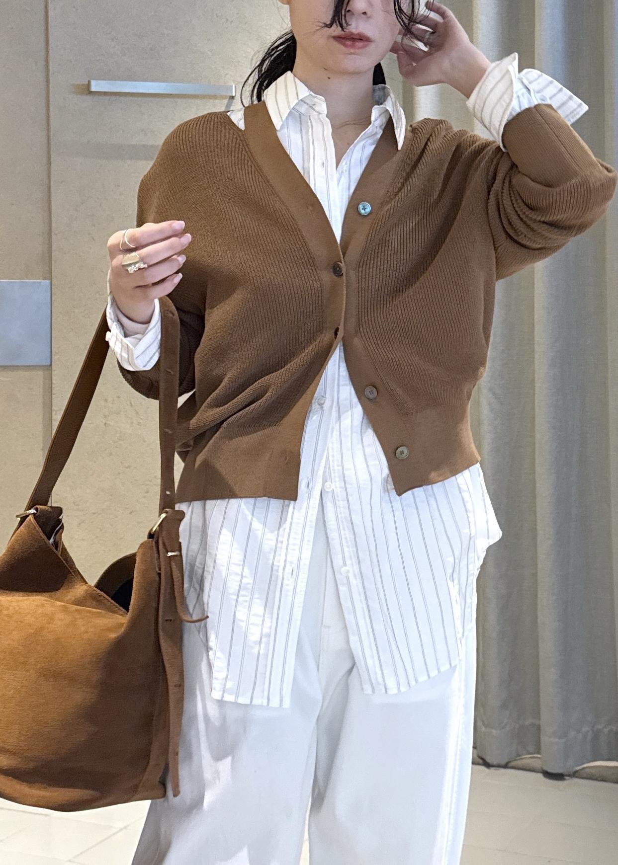カーディガンの襟元のデザインが、スタイリングを印象的に仕上げてくれます♪