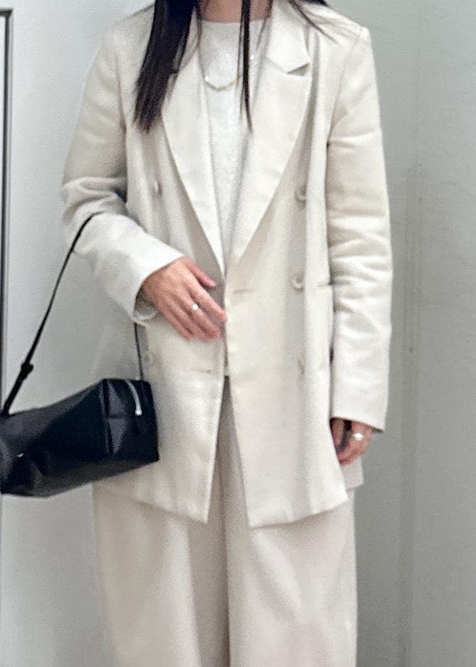 SALON adam et ropéトレビラツイルテーラードジャケットベージュ / F¥39,600レビュー158cmで丈感はお尻より下ぐらいの長さです。
