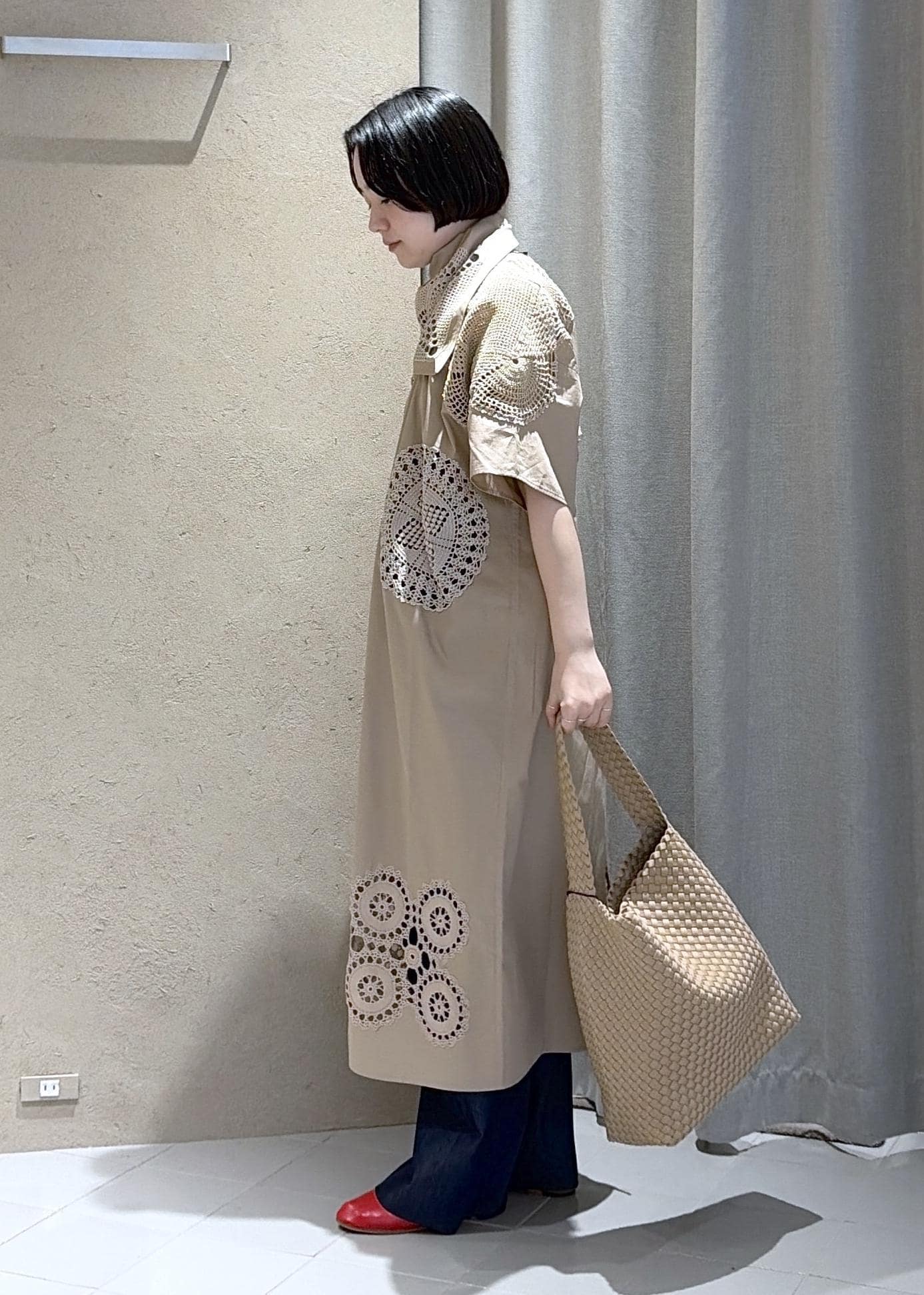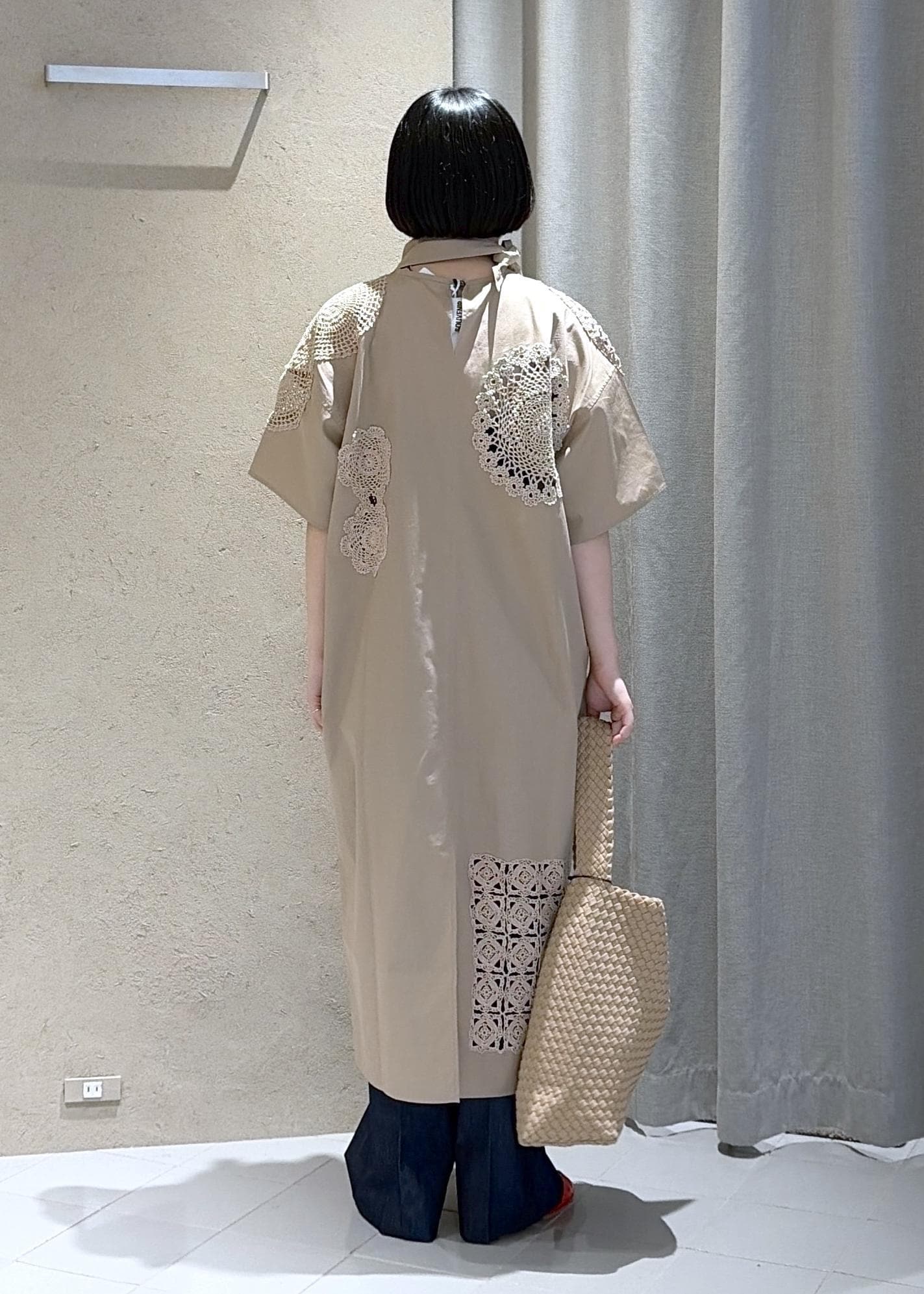 メインのワンピースは今季別注でもお取り扱いしているSOUVENIR STANDのものを着用しています。ヴィンテージのデッドストックから最高級のコットンを使用し1着1着感じが違うため自分だけのものを選んでいただけます。
