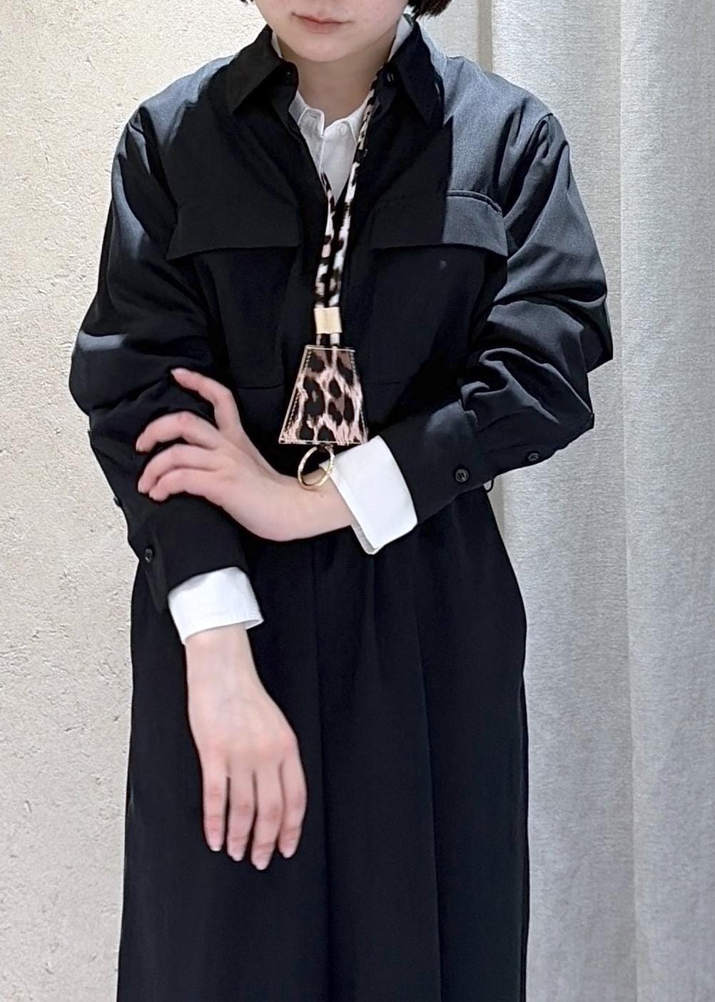 インナーにはリネンのシャツを使い、少しアクセントが欲しかったのでレオパード柄のキーケースを合わせました。