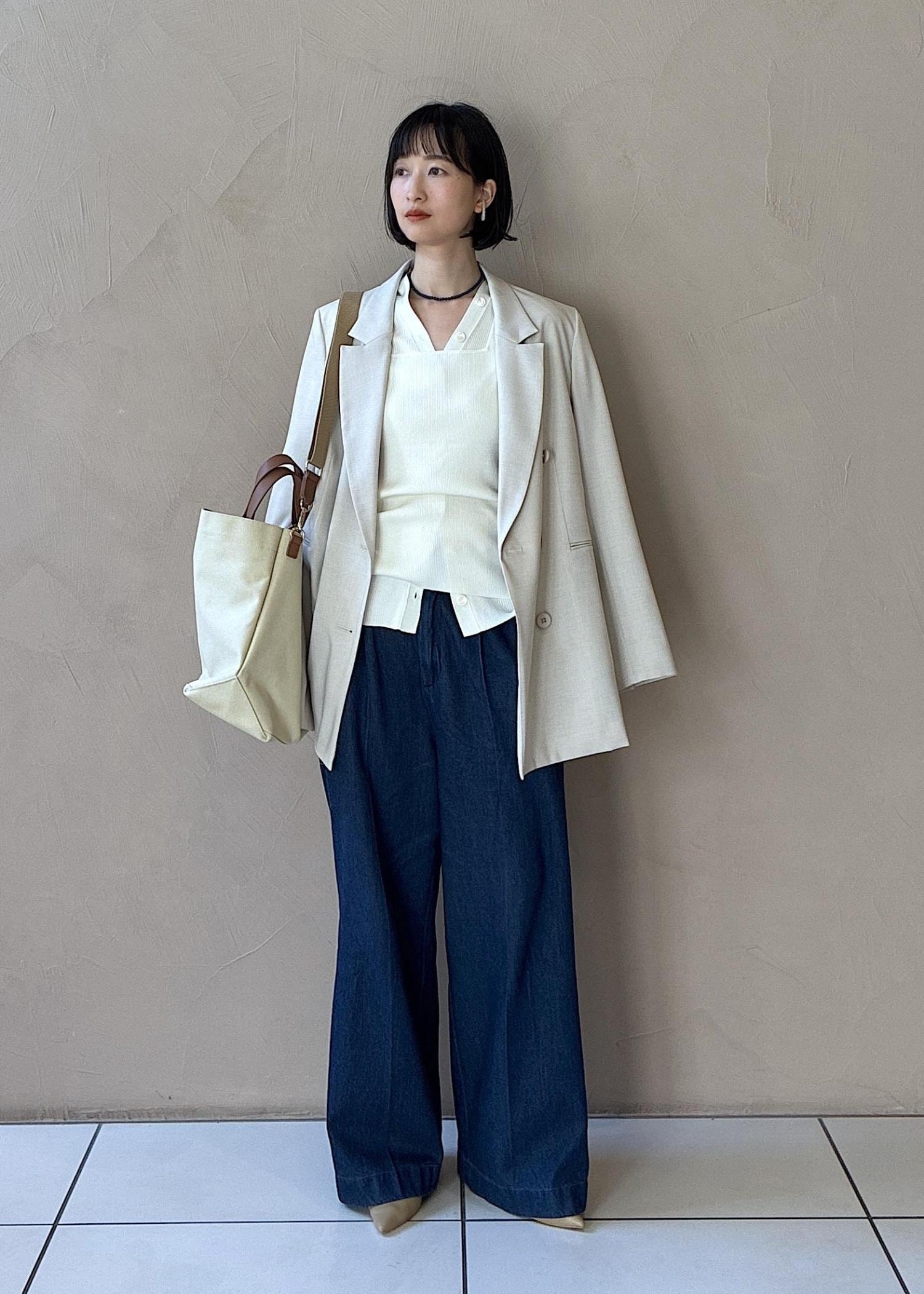 デニムはタックシルエットなのでカジュアルすぎない綺麗めのパンツです。