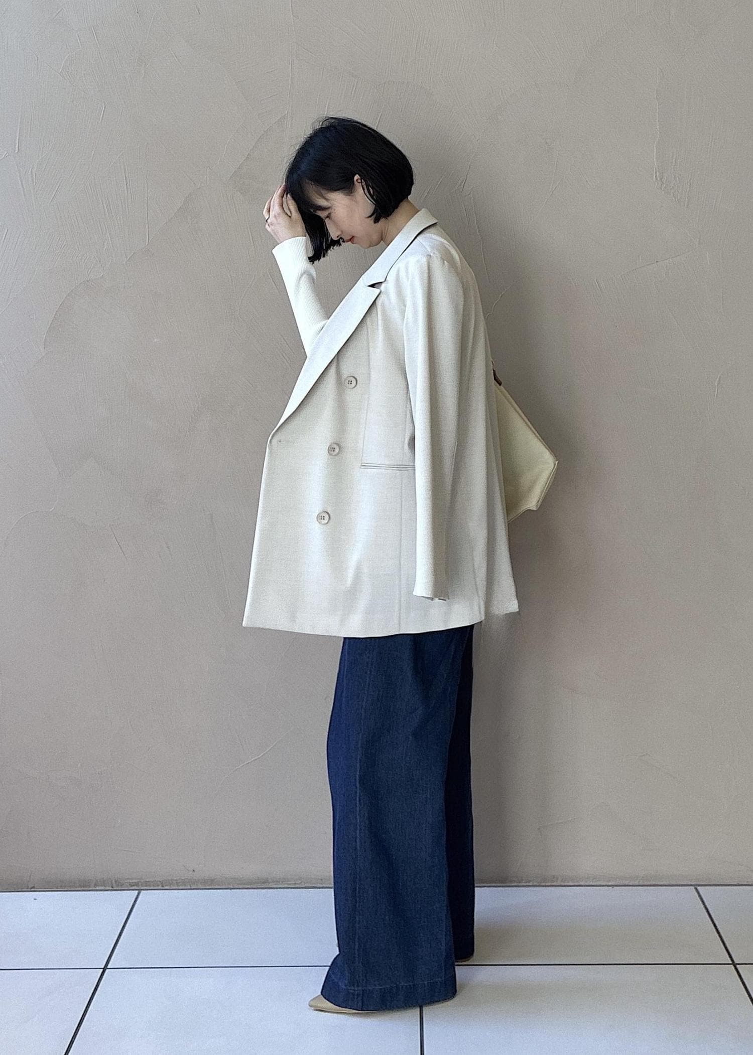 ジャケット×デニムタックパンツ
