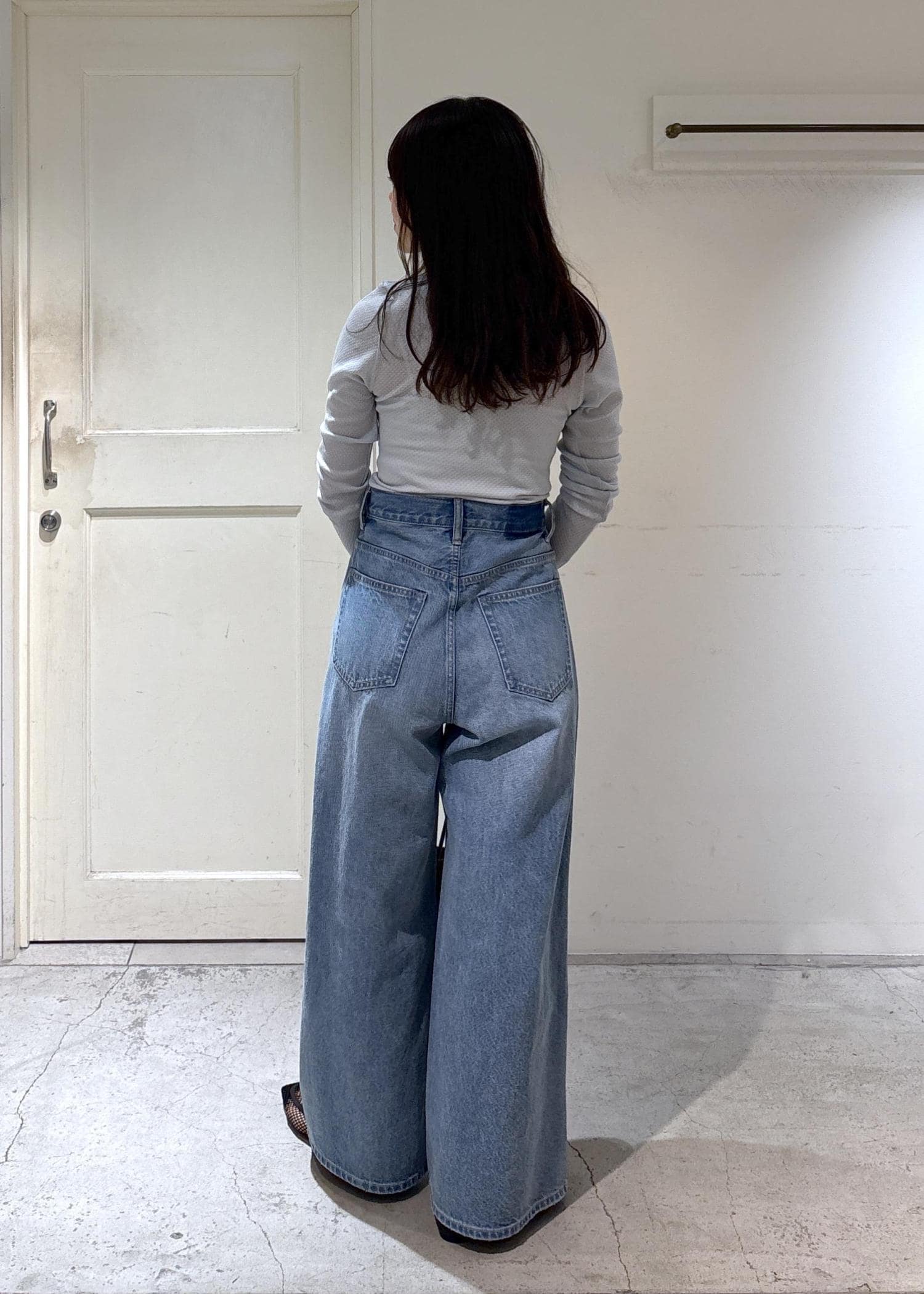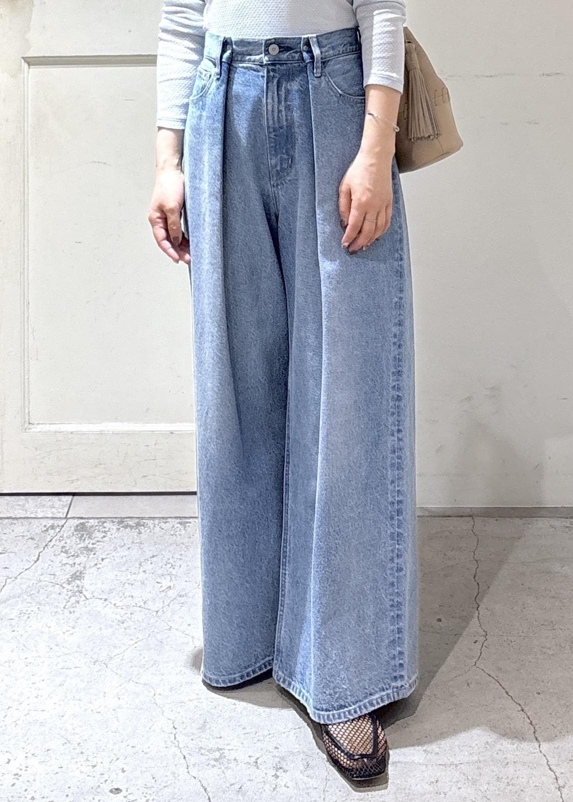 SALON adam et ropé【WEB限定】フロントタックデニムパンツサックス / M¥17,600レビュー158㎝で踵が隠れるくらいですが地面には付かない丈です。