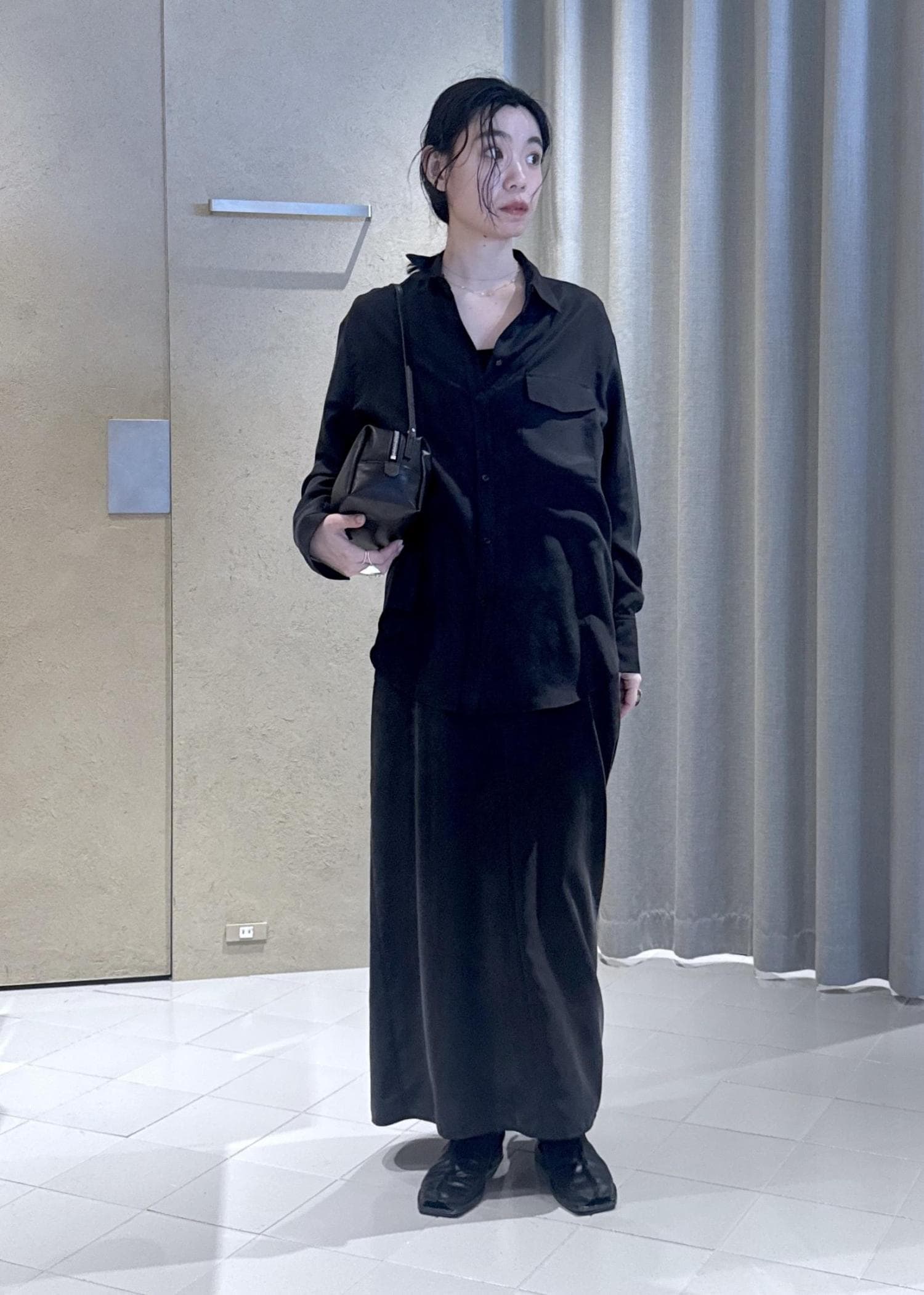 お家で水洗いもできて、特に黒は汚れも目立ちにくくデイリーに使えるシルクシャツです。 -