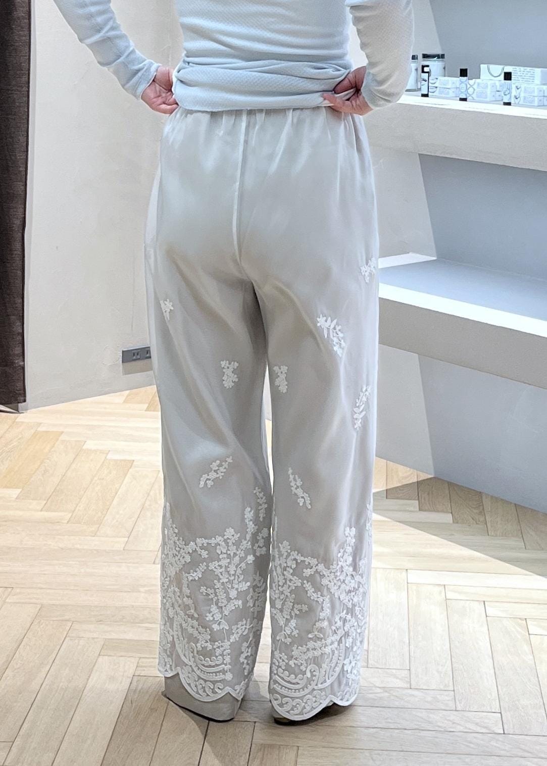 SALON adam et ropé[26SS]GENTLE SILK パンツ / セットアップ対応・洗えるベージュ系 / S¥31,900レビューウエストで一折りしています。Sサイズであっても私の身長だと、3cmくらいのヒールが望ましいです。