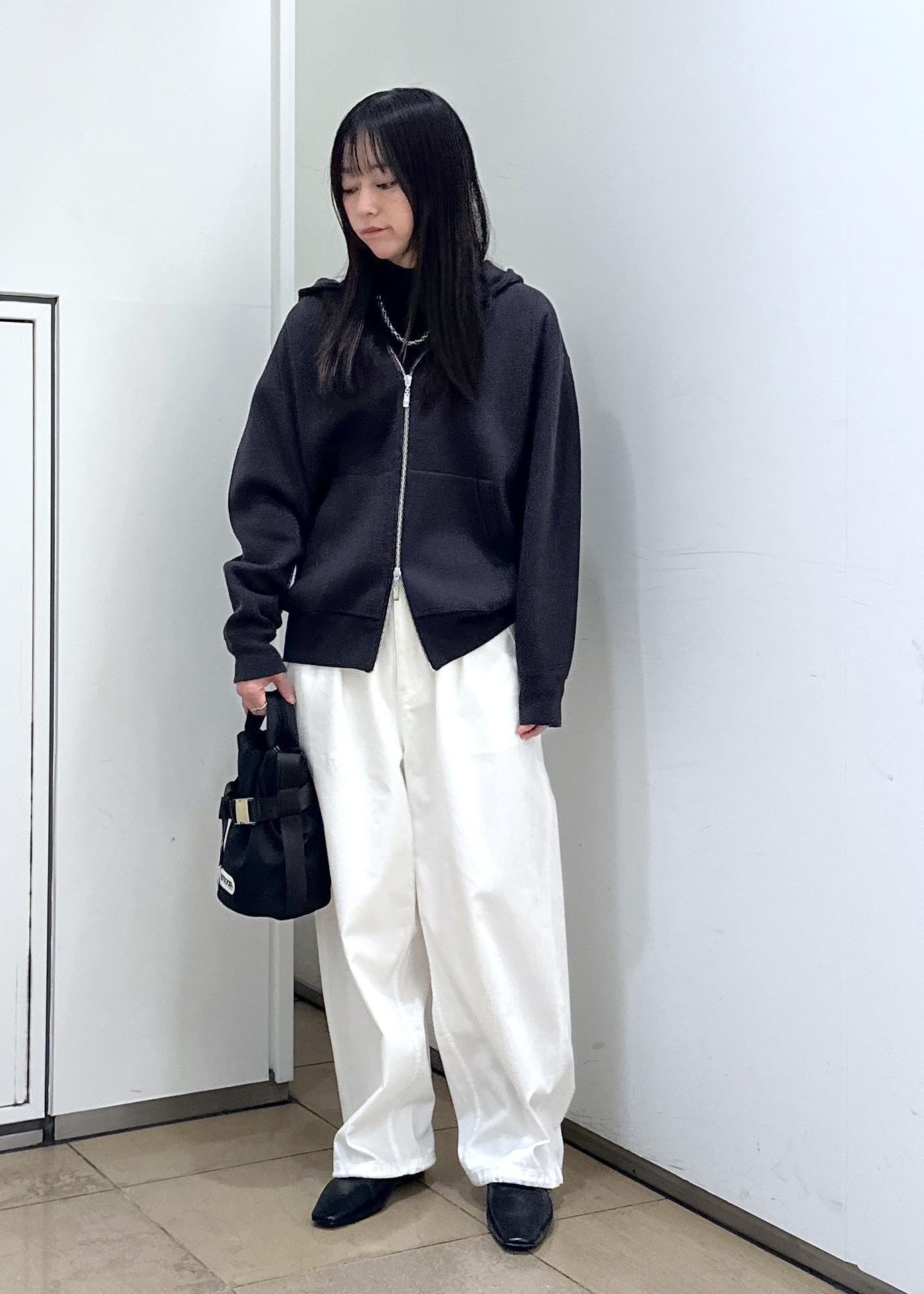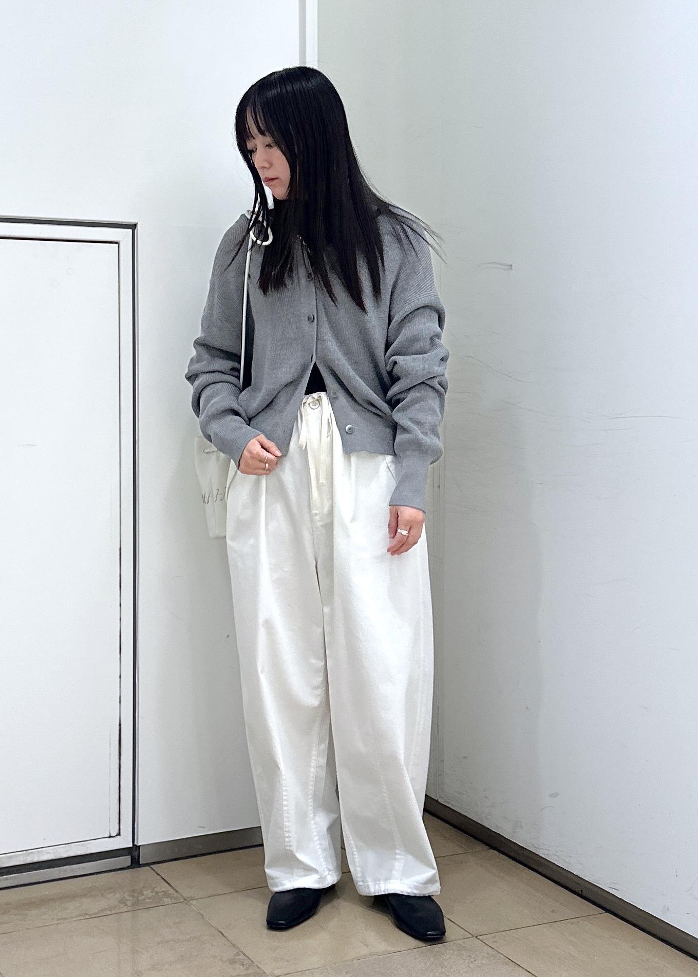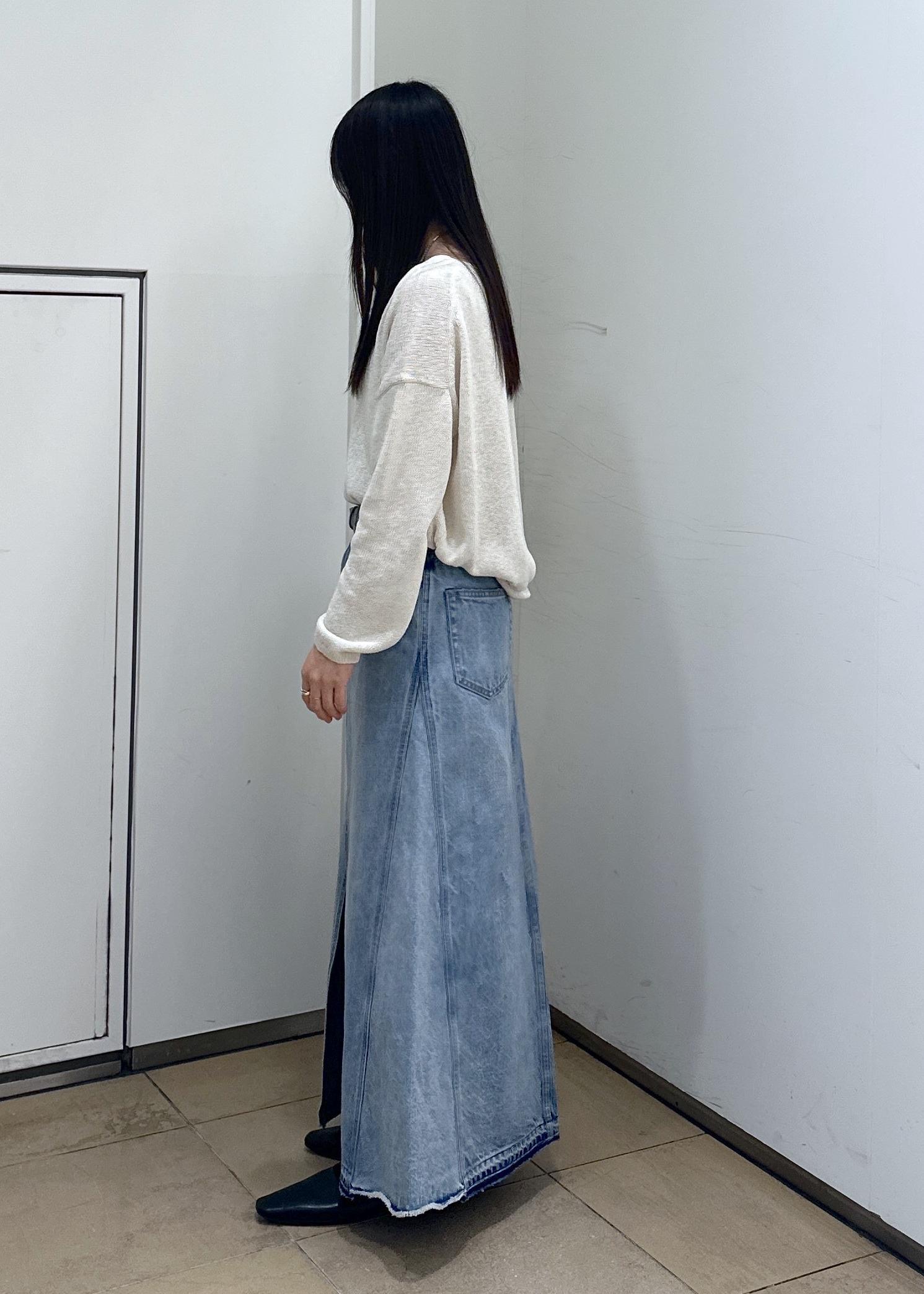 スリットが程よい抜け感を出してくれるので、シンプルなトップスでもこなれた印象に。