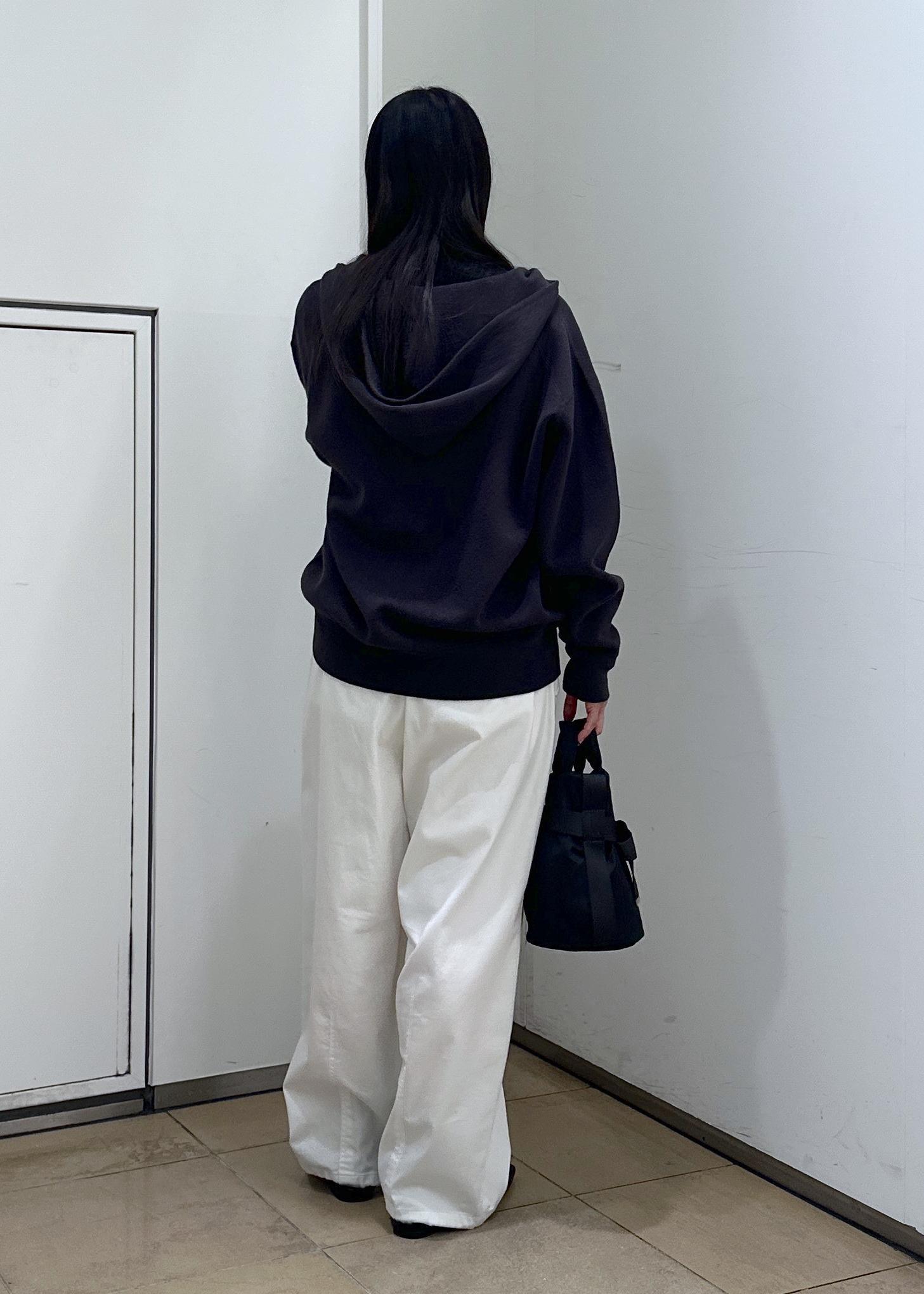 SALON adam et ropéクレープスウェットライクジップパーカーチャコール / F¥17,710レビュー袖の長さは手の甲が隠れる長さ。