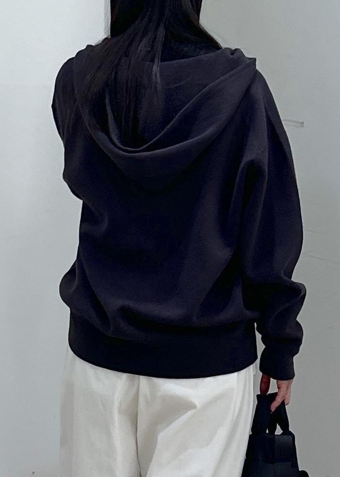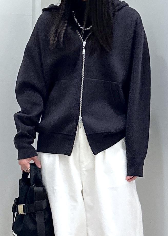 スウェットのようにラフに着られるのに、ニットならではの上品さがあるジップパーカーです。