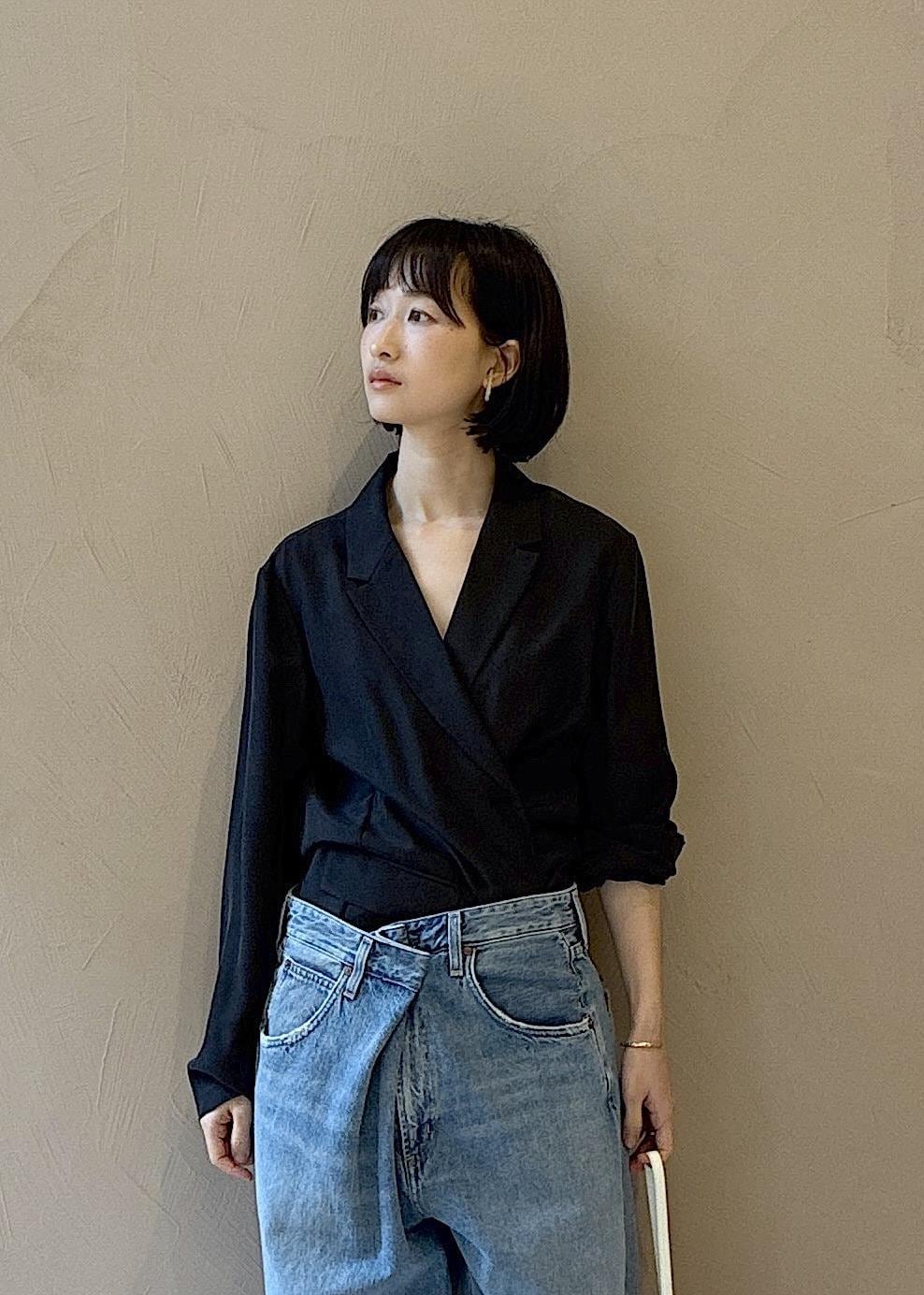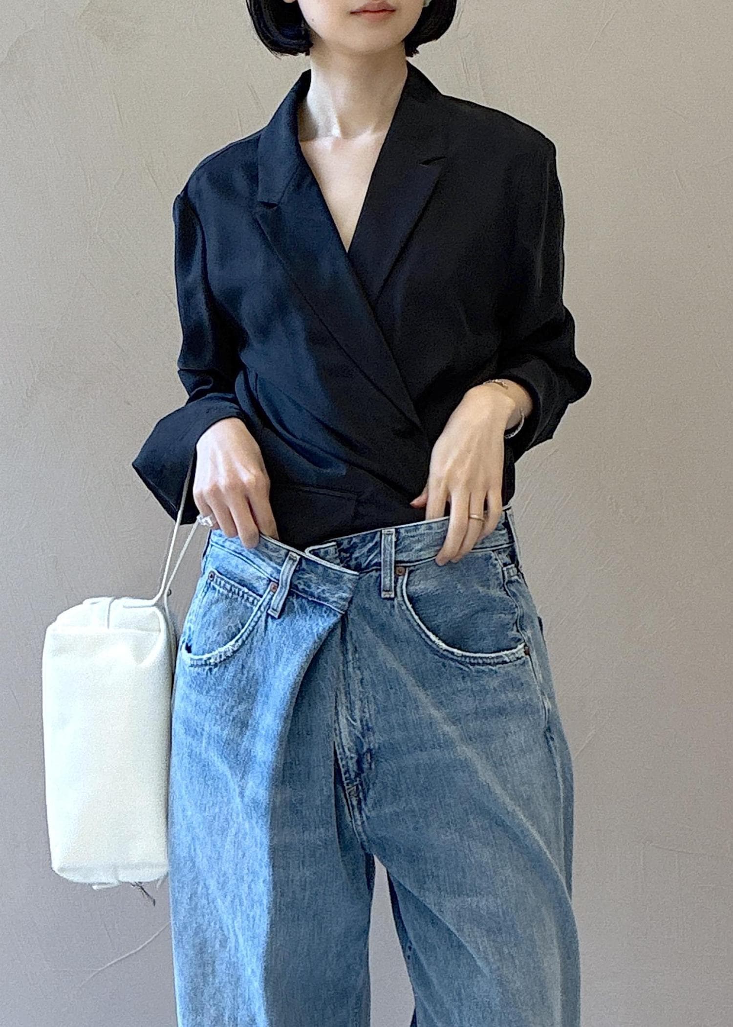 gentle silkのジャケットにAGOLDEのデニムを合わせました。