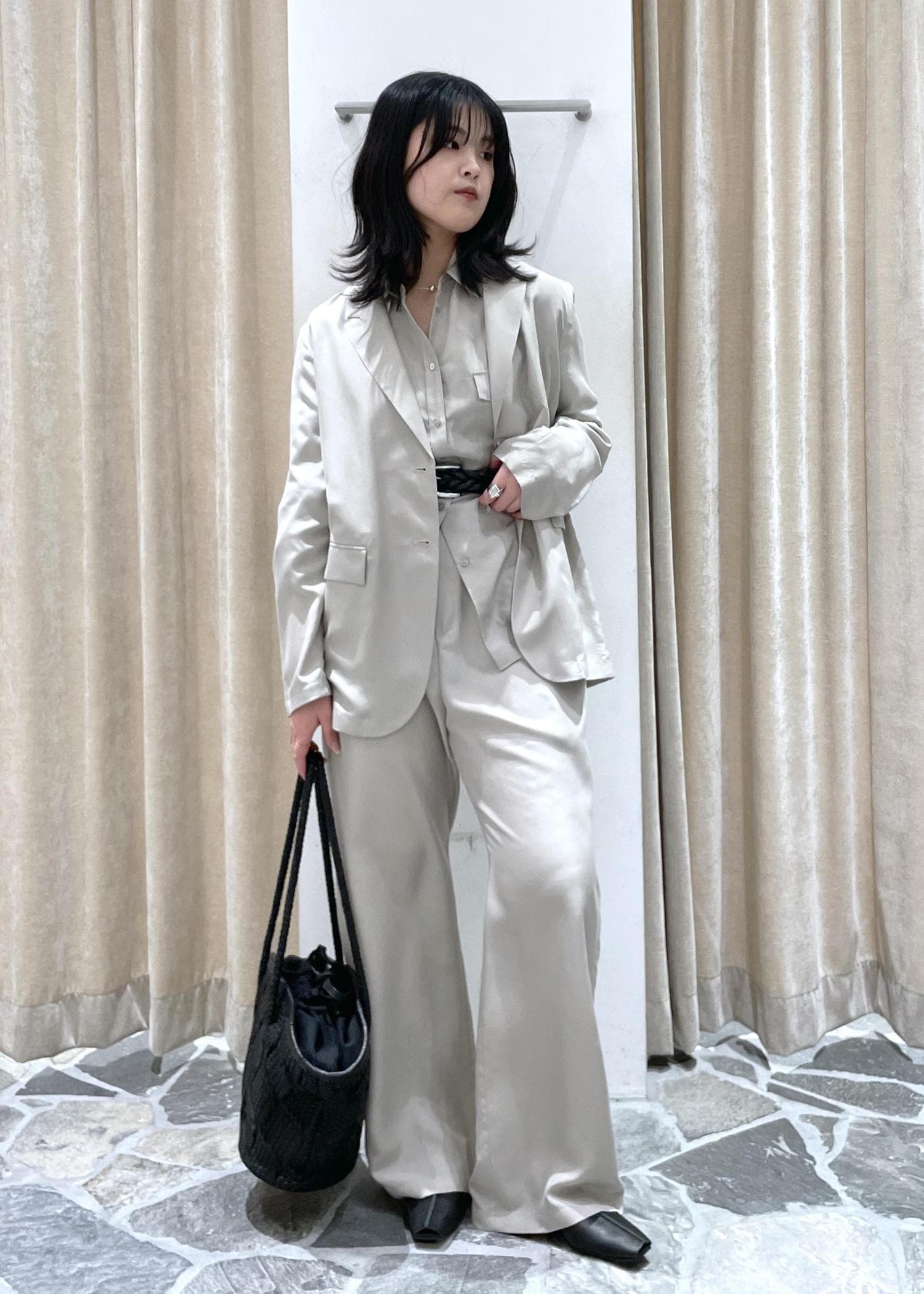 SALON adam et ropé[26SS]GENTLE SILK ジャケット / セットアップ対応・洗えるベージュ系 / F¥42,900レビュー【サイズ感】
