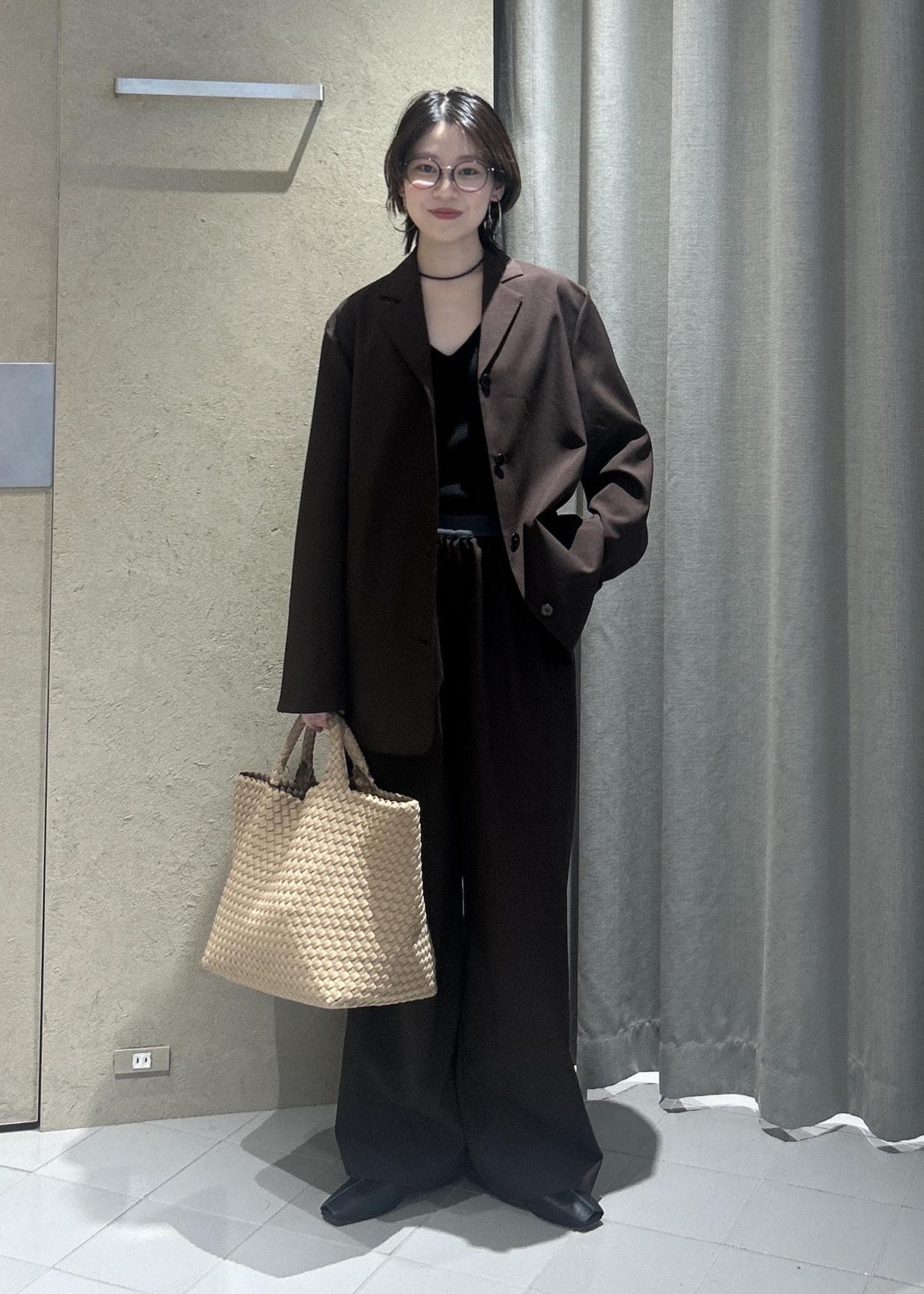 同素材のセットアップと合わせるとカチッとまとまります。 -