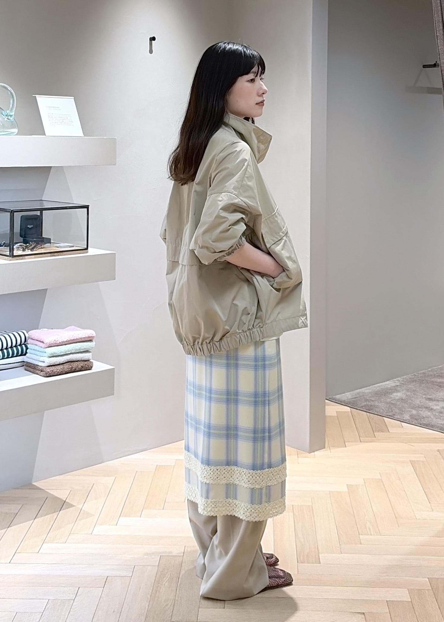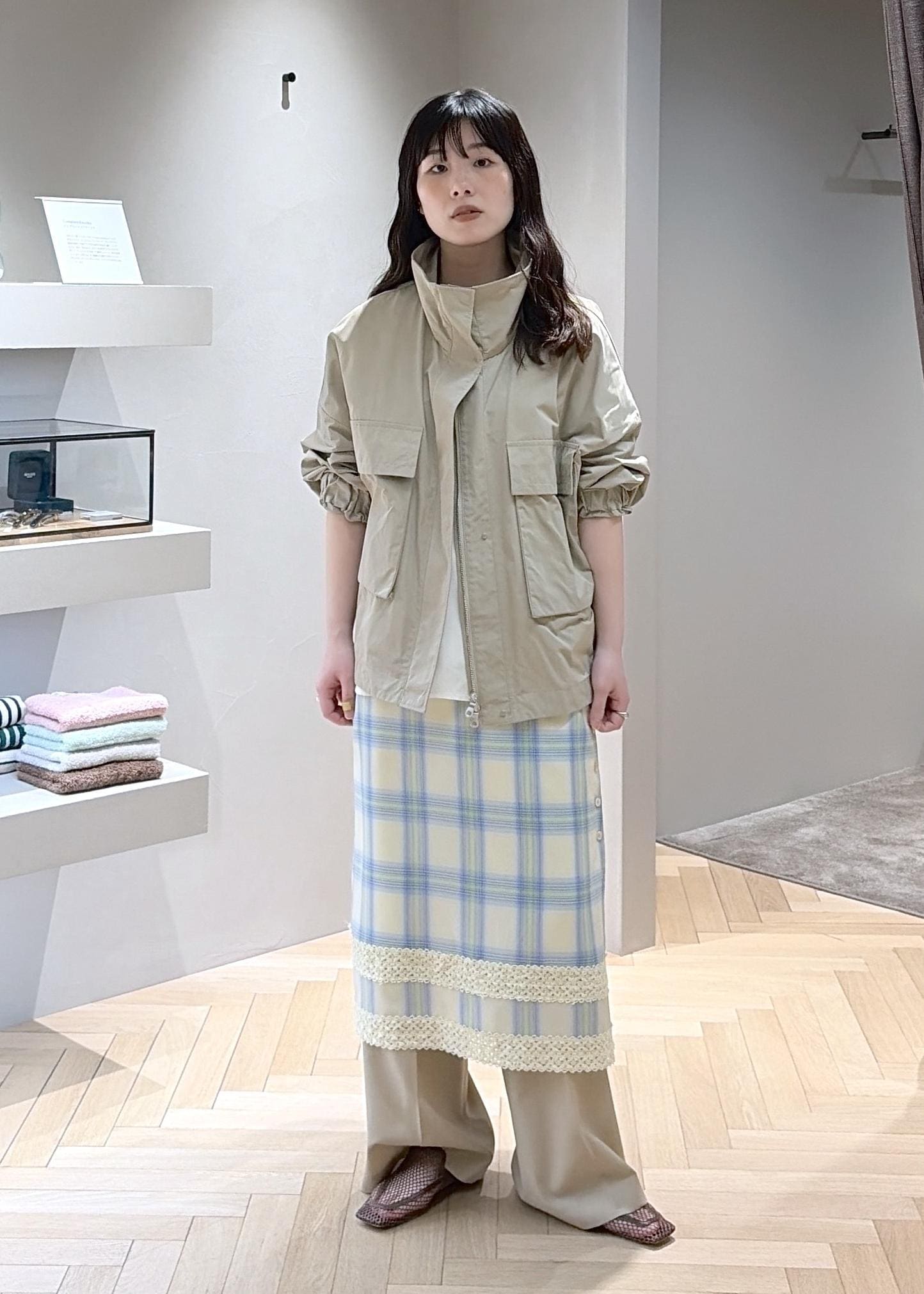 EENKのスカートとベージュ系ワントーンでまとめました。