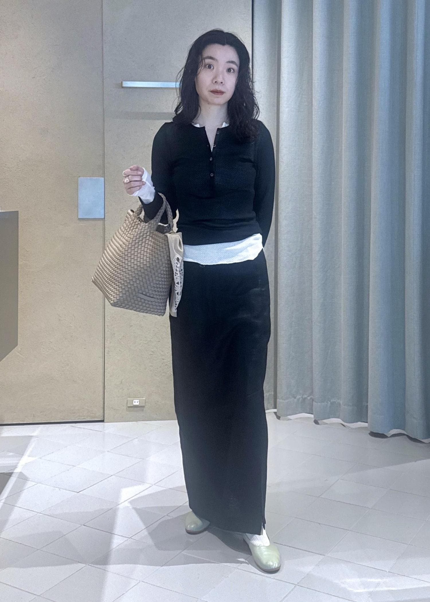 SALON adam et ropéリネンドンゴロススカート/セットアップ対応ブラック / S¥20,900レビュー【サイズ感】