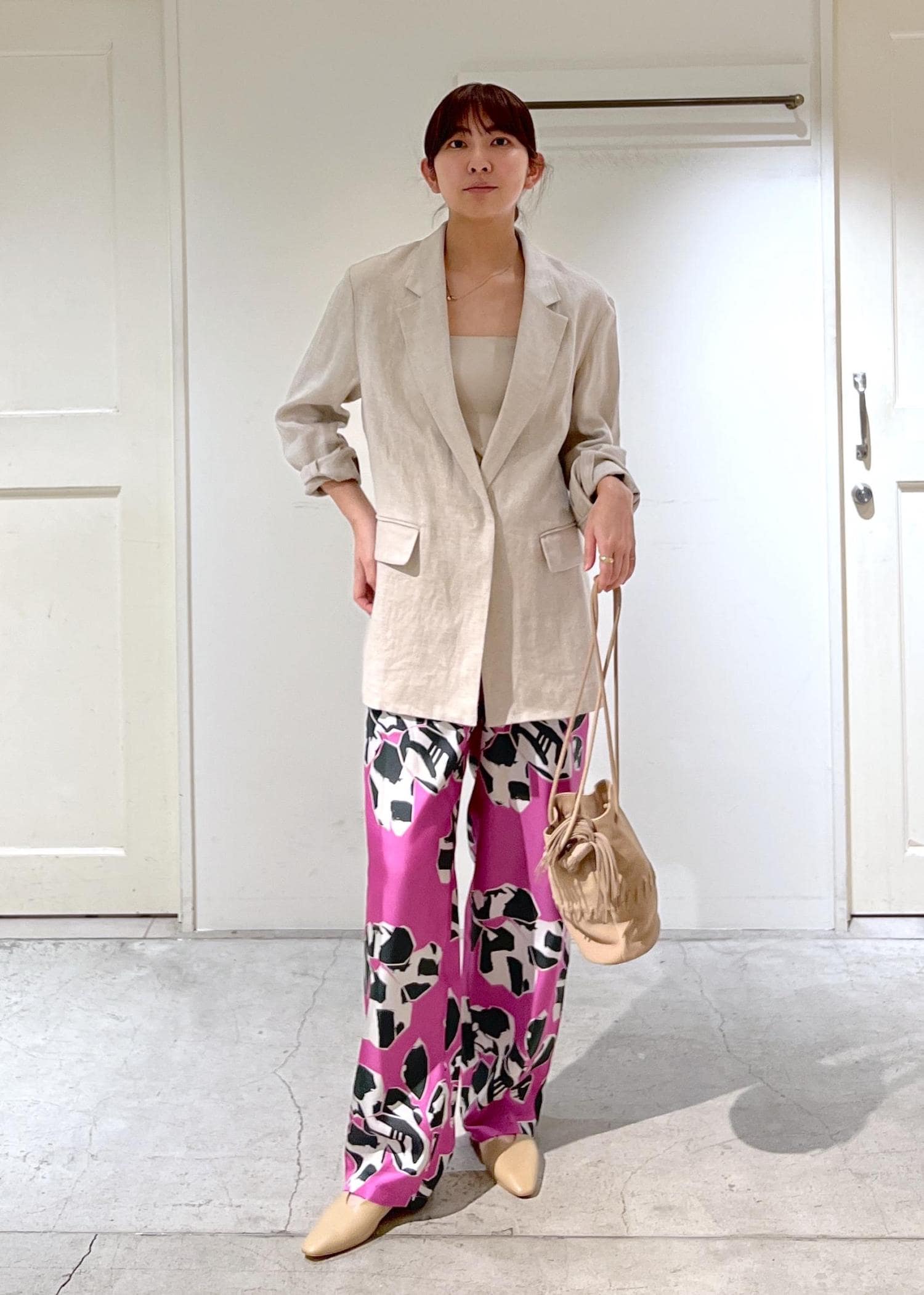 柄パンツ×ジャケット