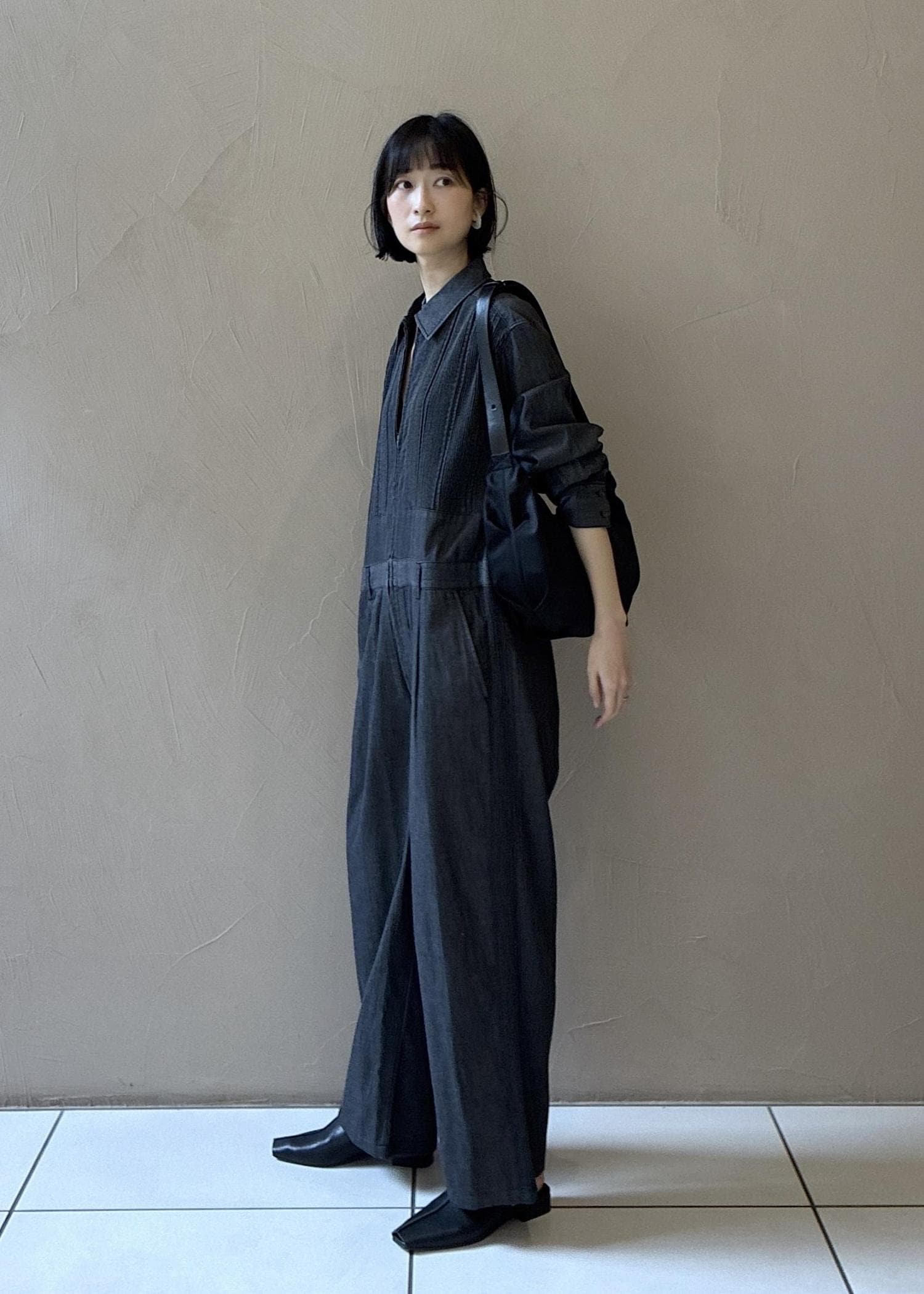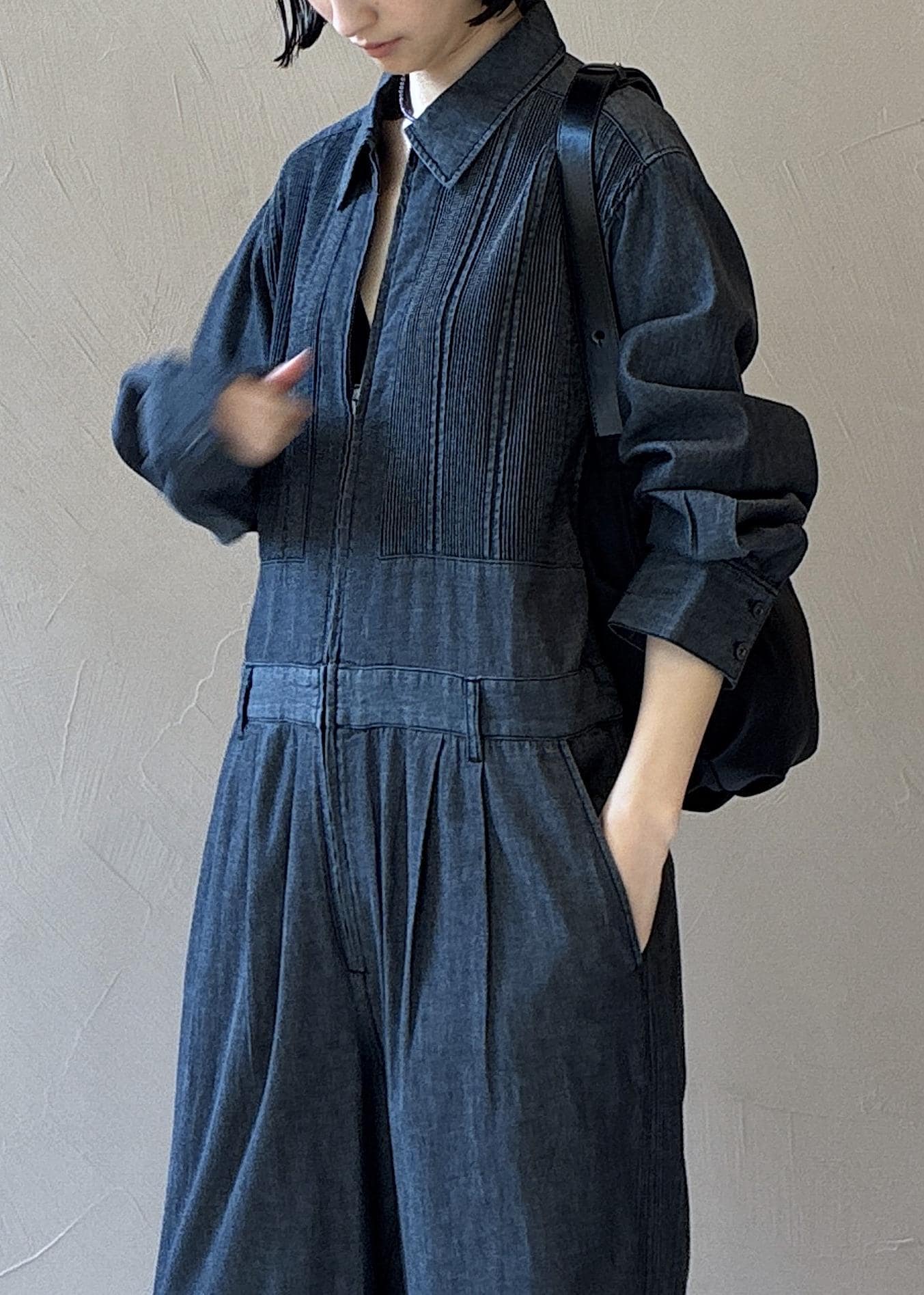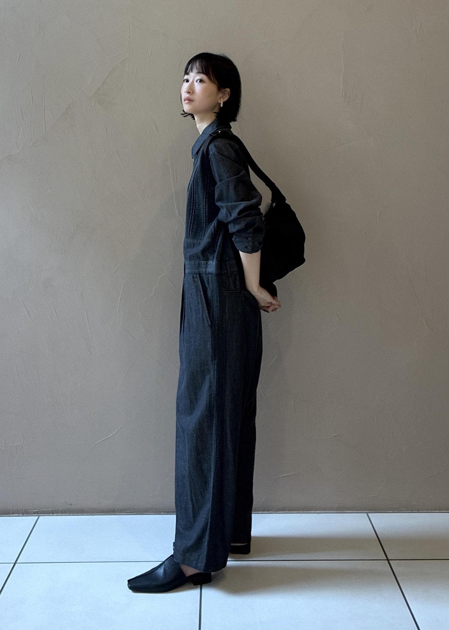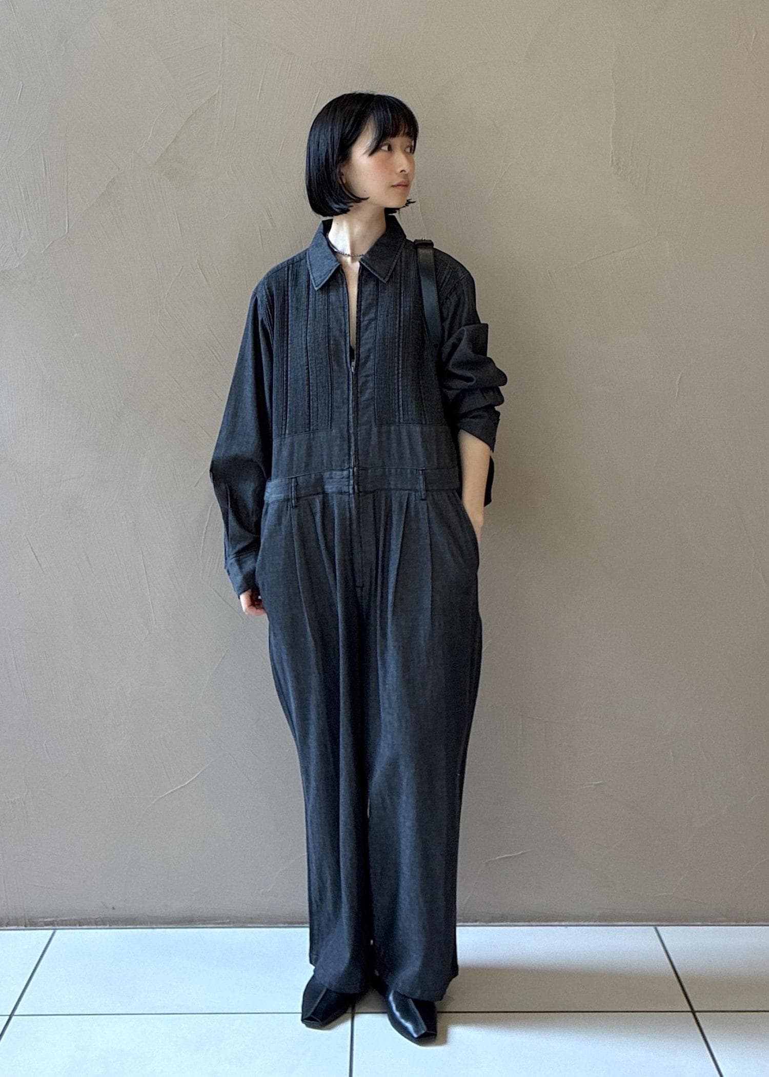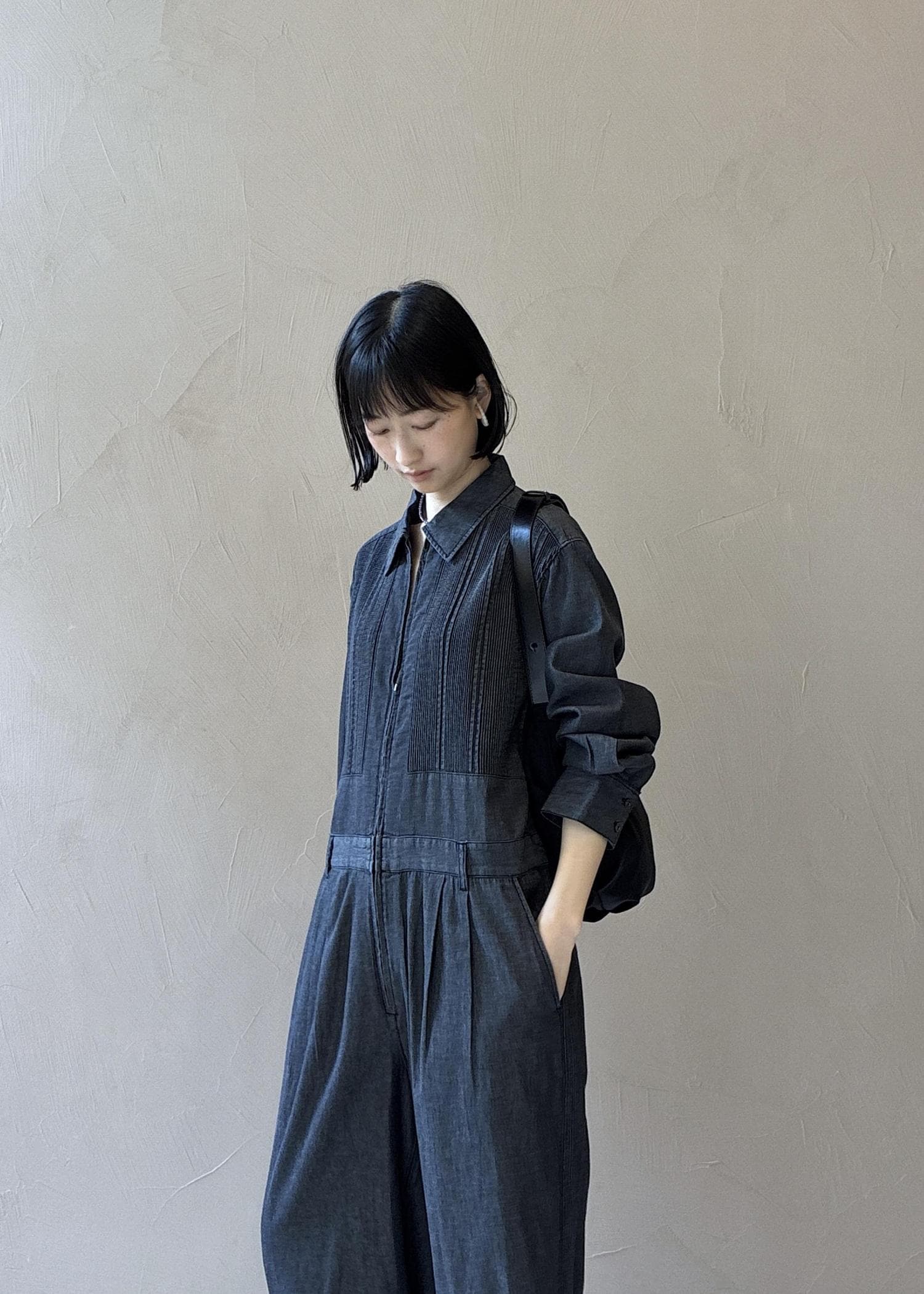 オールインワンは胸元のピンタックデザインがとても素敵。
