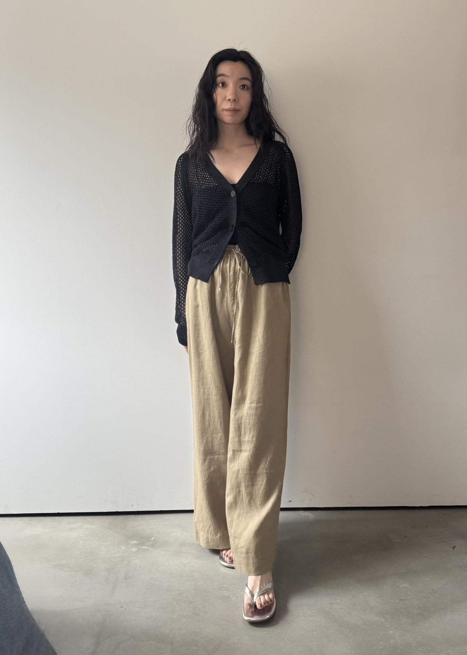 ペーパーヤーンメッシュカーディガン