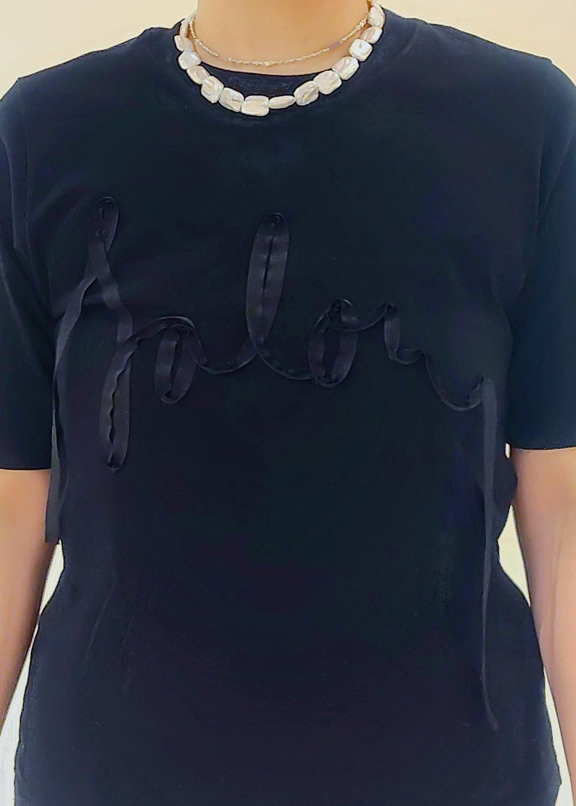 NEW!SALON adam et ropéテープ刺繍コンパクトTシャツブラック / F¥9,900レビューコンパクトTシャツですが、窮屈なこともなくは着心地のよいTシャツです。