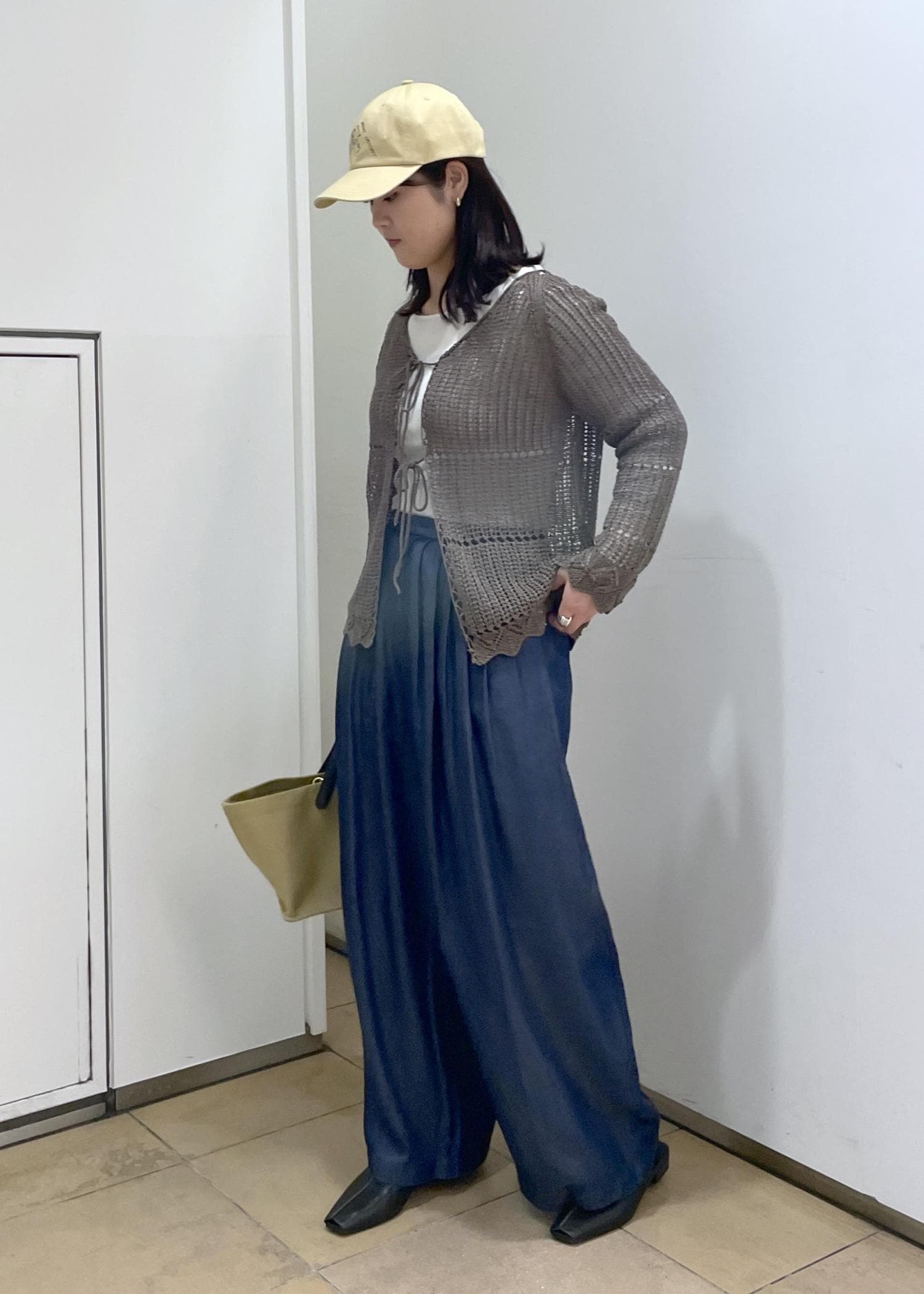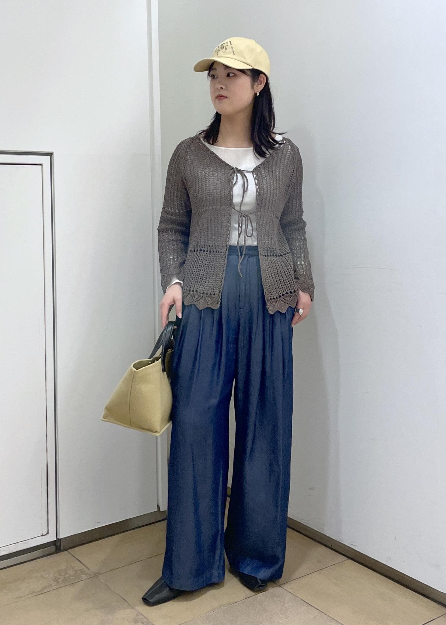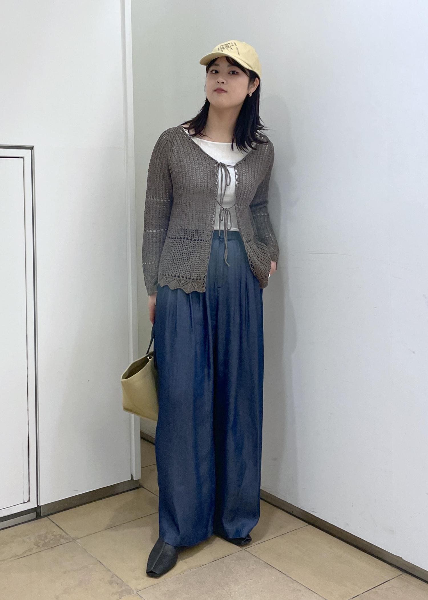 落ち感のある柔らかい素材で、動いた時のシルエットもきれいです。 -