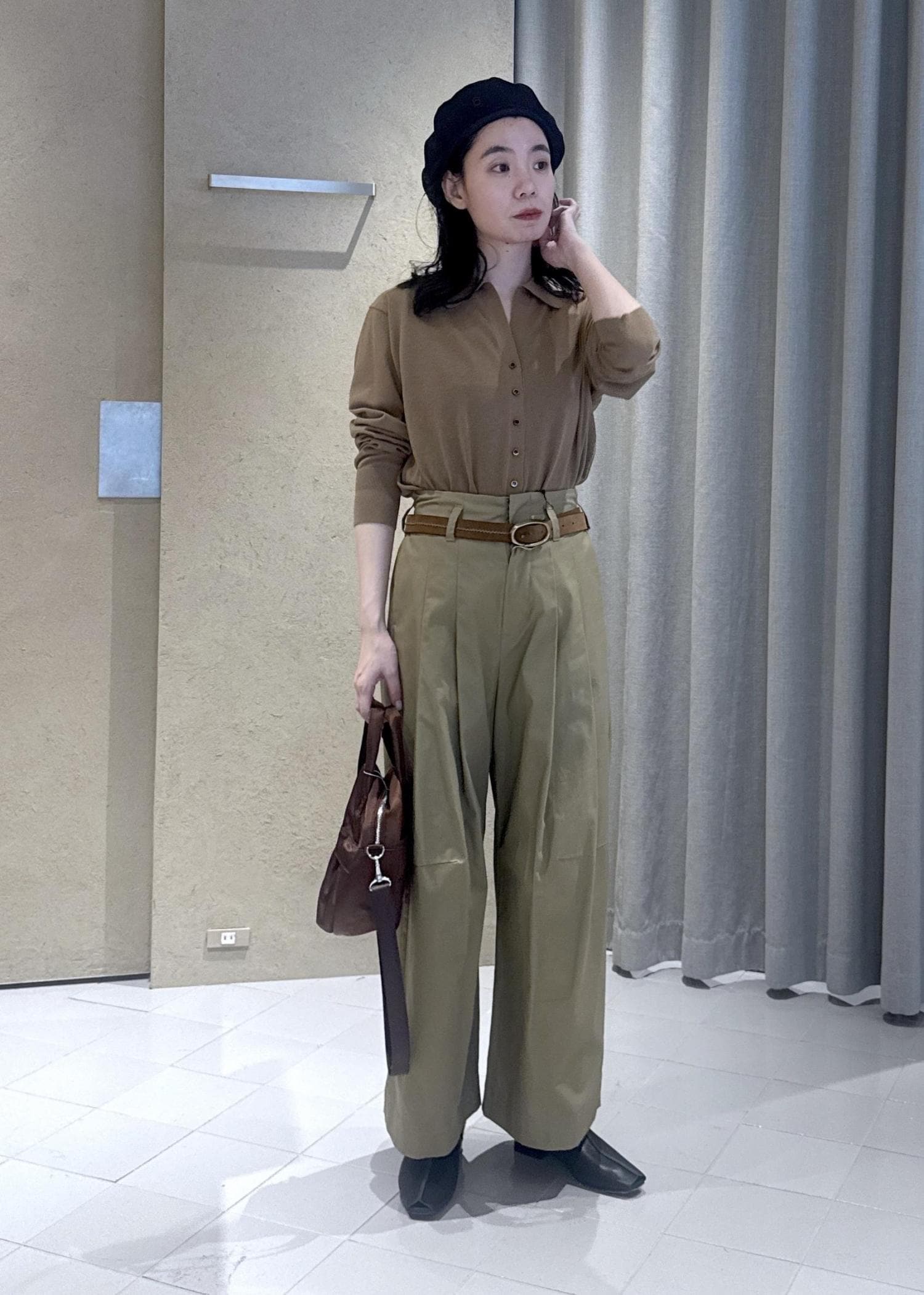 フロント部分は芯が入っており、一般的なベレー帽より形が決まりやすいです。 -