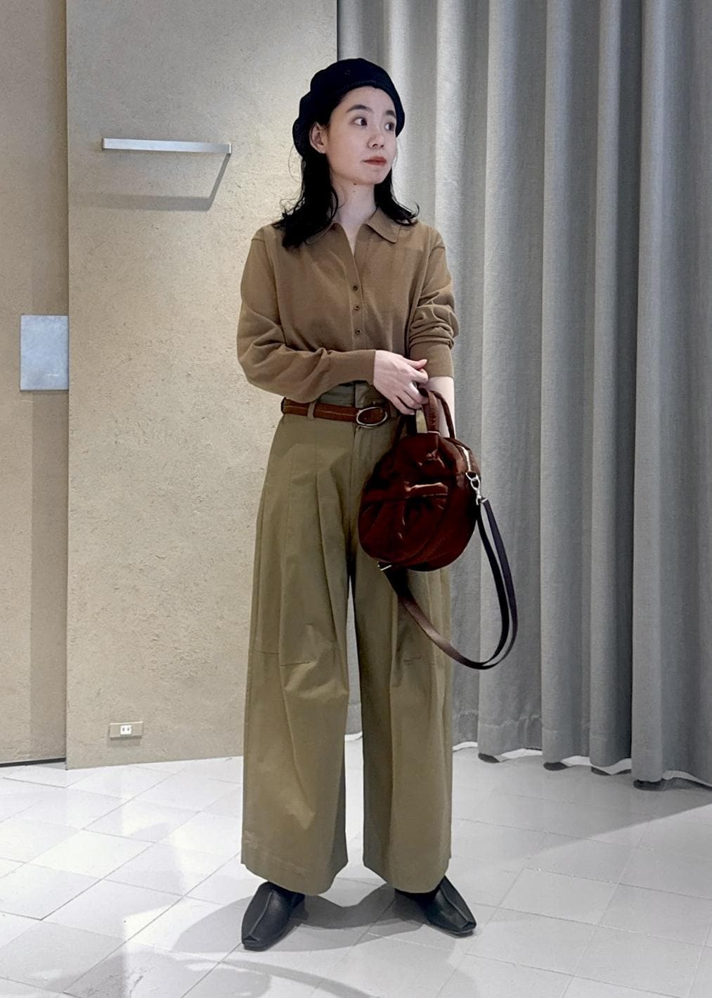トレンドの襟付きニットを使った大人カジュアルスタイリング