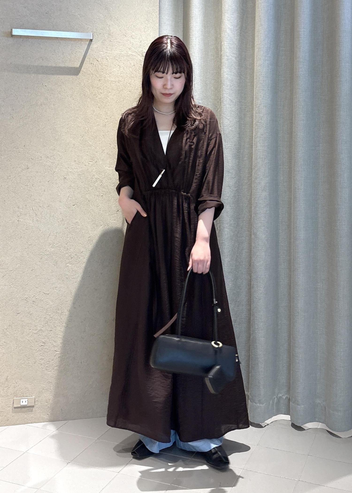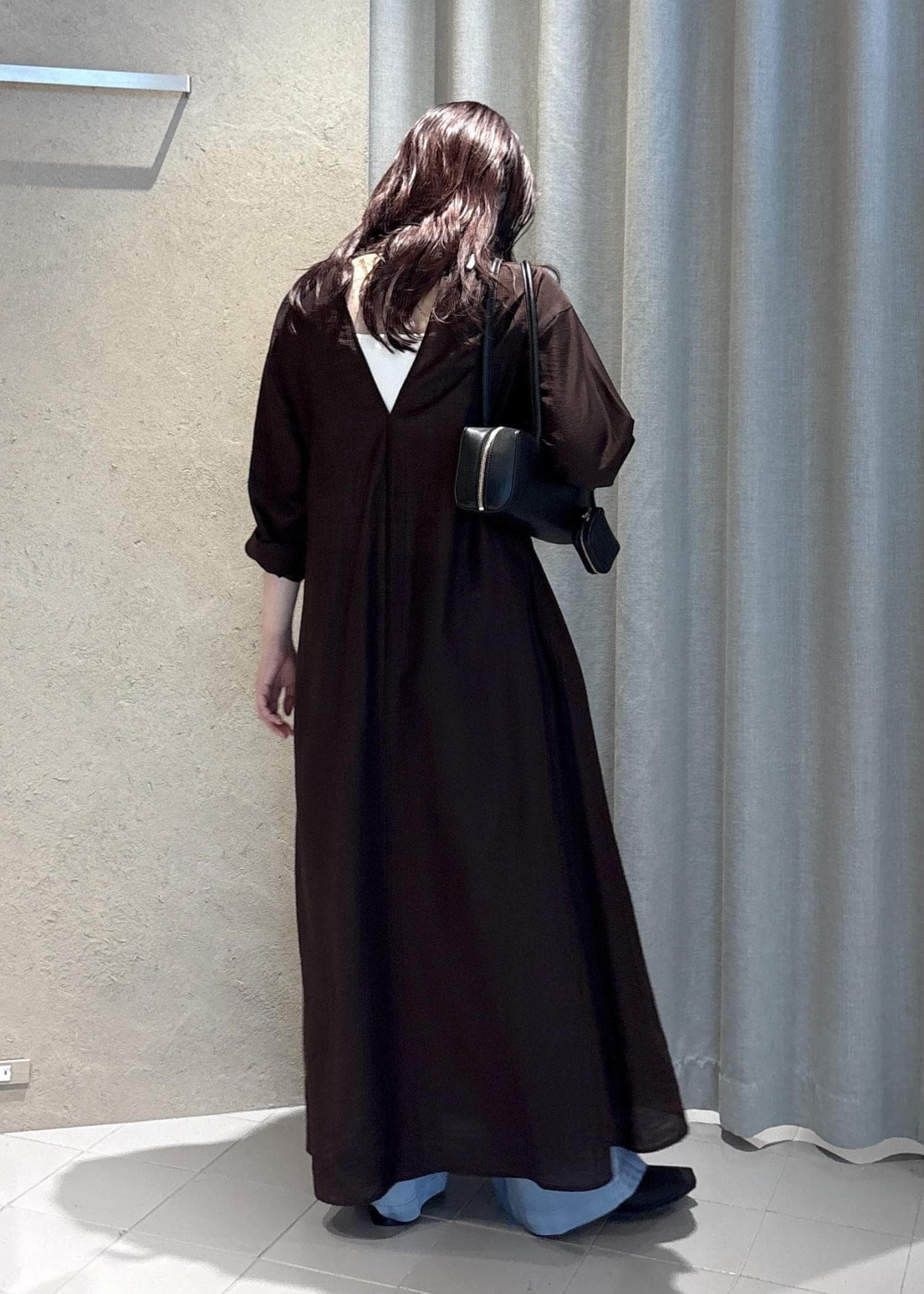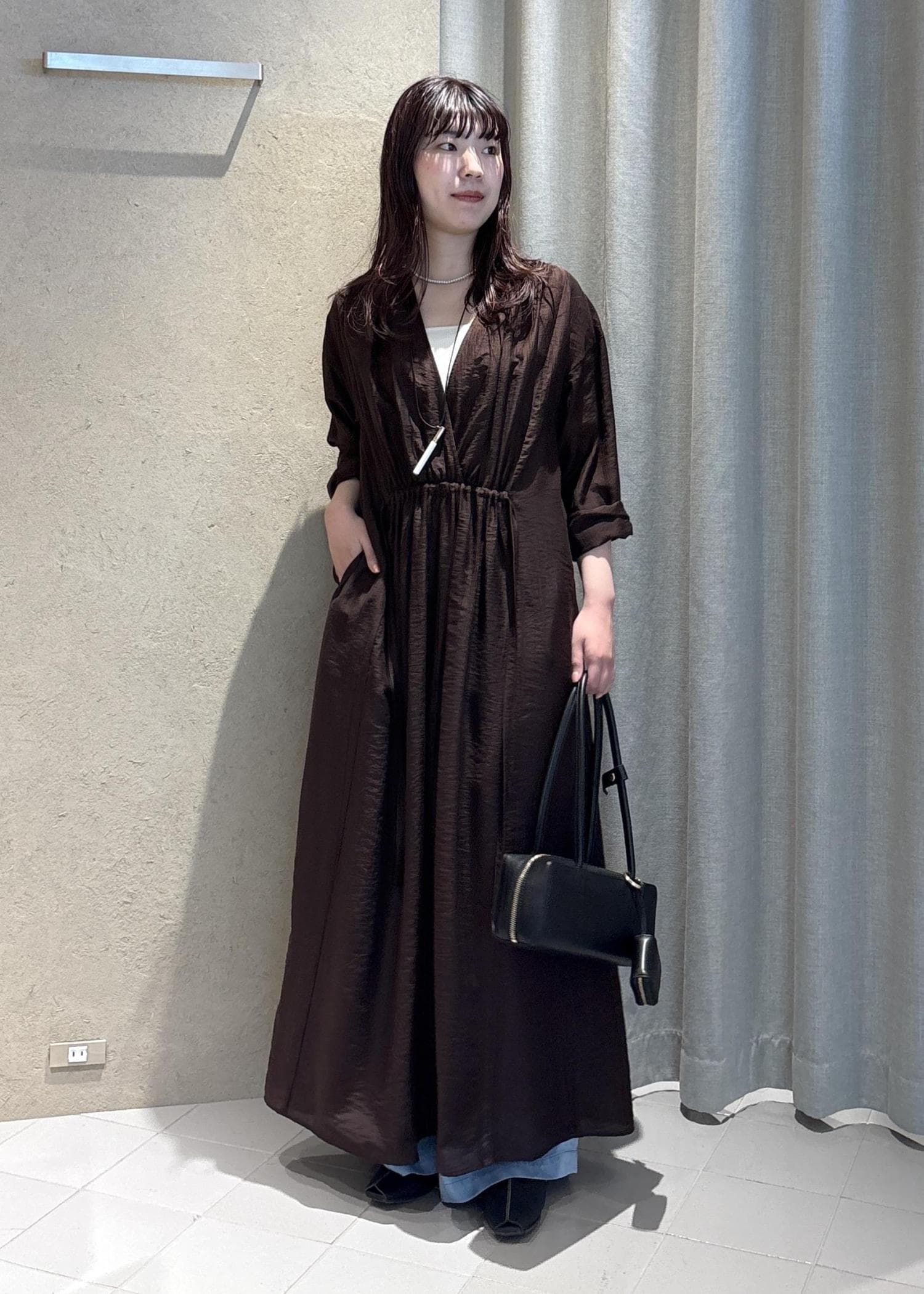 SALON adam et ropé【WEB限定】サブリエギャザーワンピースブラウン / F¥25,300レビューとにかく軽くて着心地が良いワンピース。柔らかい素材なので少し透けますが、パンツとレイヤードが楽しめる1枚となっています。梅雨の時期や初夏まで快適に着られます。