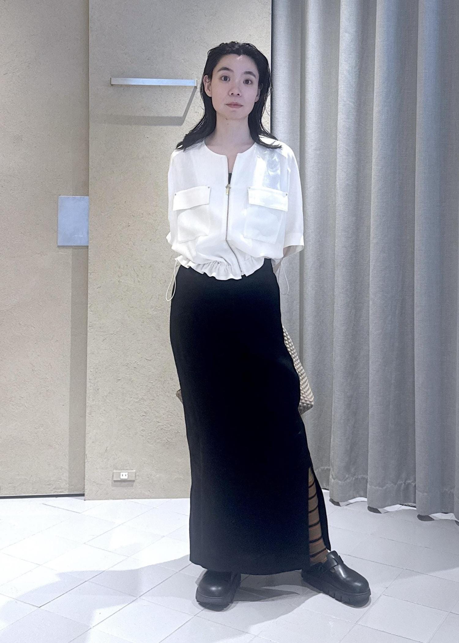 ボトムはタイトシルエットで縦長を意識しました!