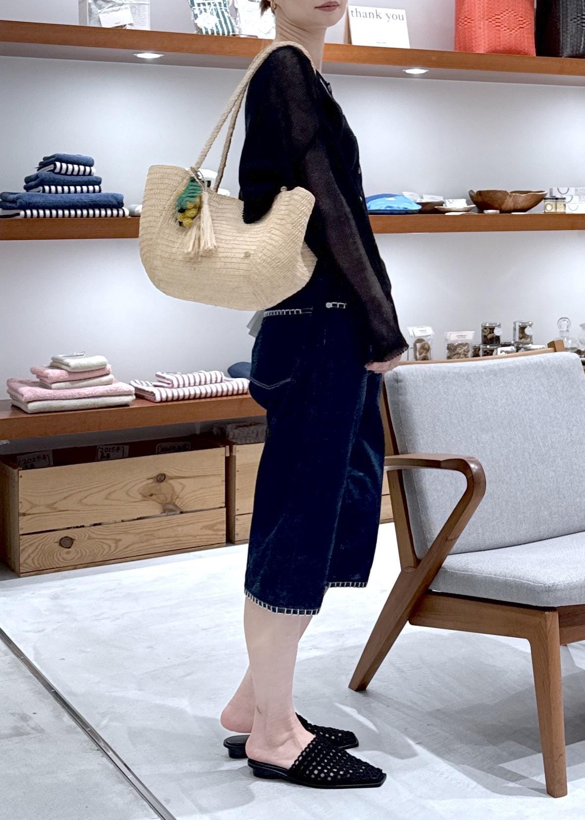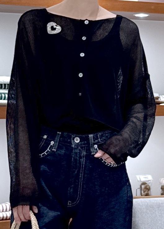 SALON adam et ropéオーガニックリネンシアークロップドカーディガンブラック / F¥18,700レビュー程よい艶感とハリ感があり上品に着こなせます◎