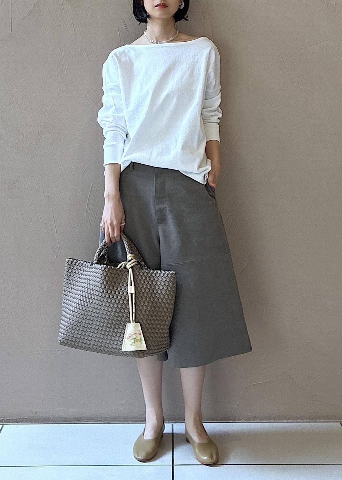 ウルトラスエードのハーフパンツにバックシルエットが素敵なトップスを合わせました。