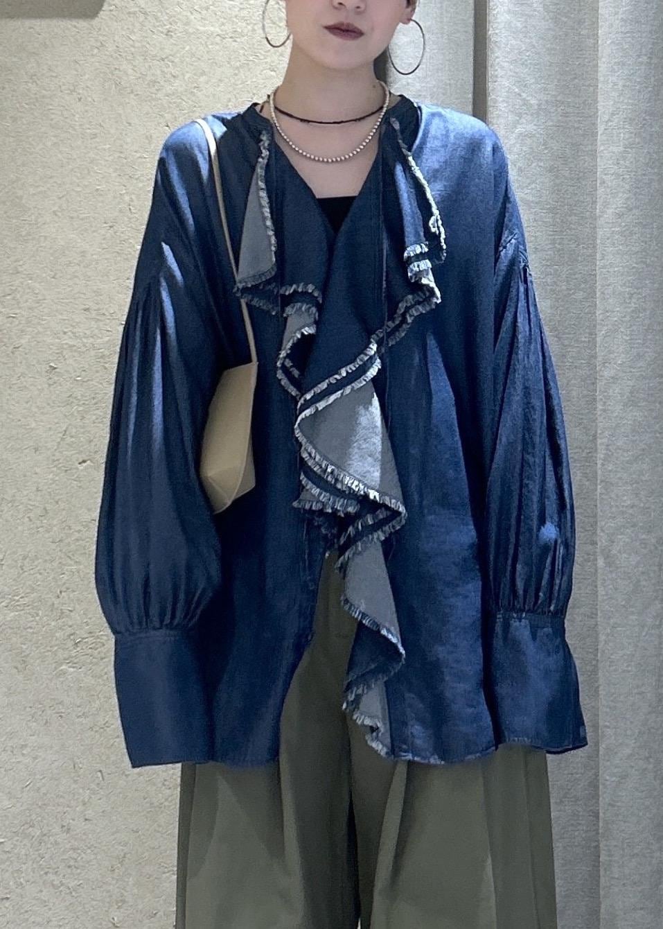 SALON adam et ropéデニムライクラッフルフリルブラウスブルー系 / F¥23,100レビュー【サイズ感】