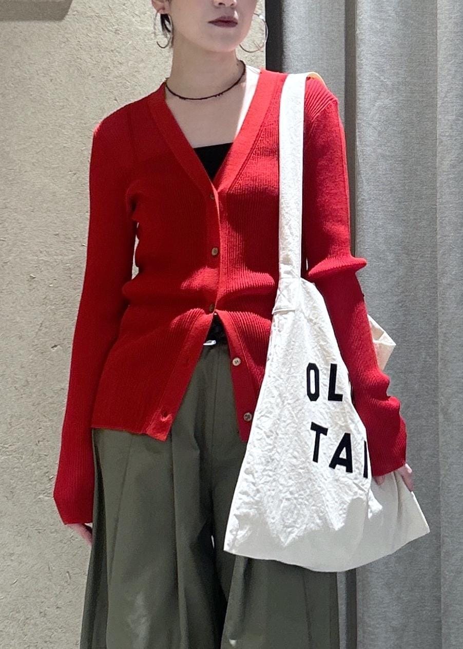初夏に活躍するシアーリブニットカーディガン。