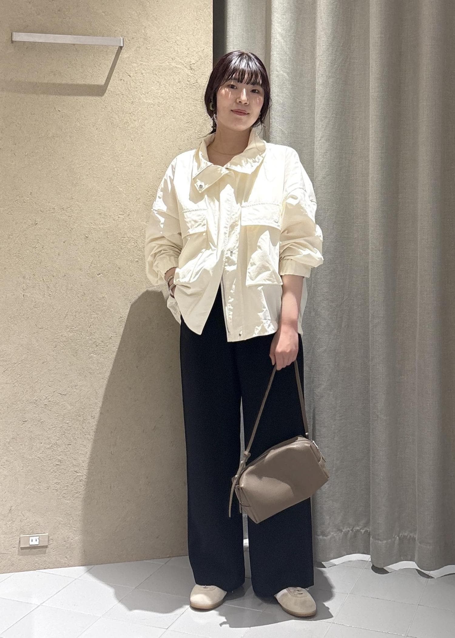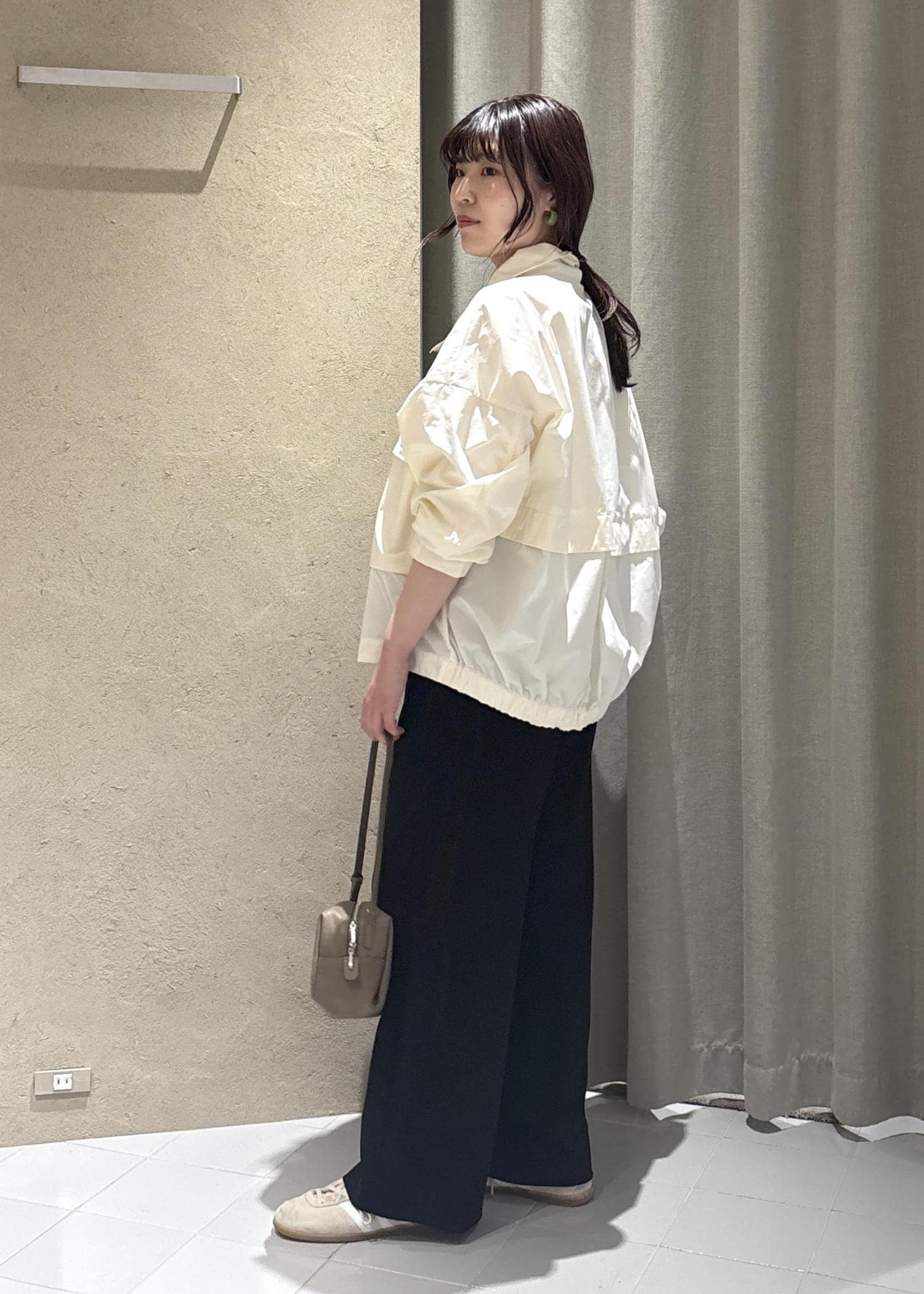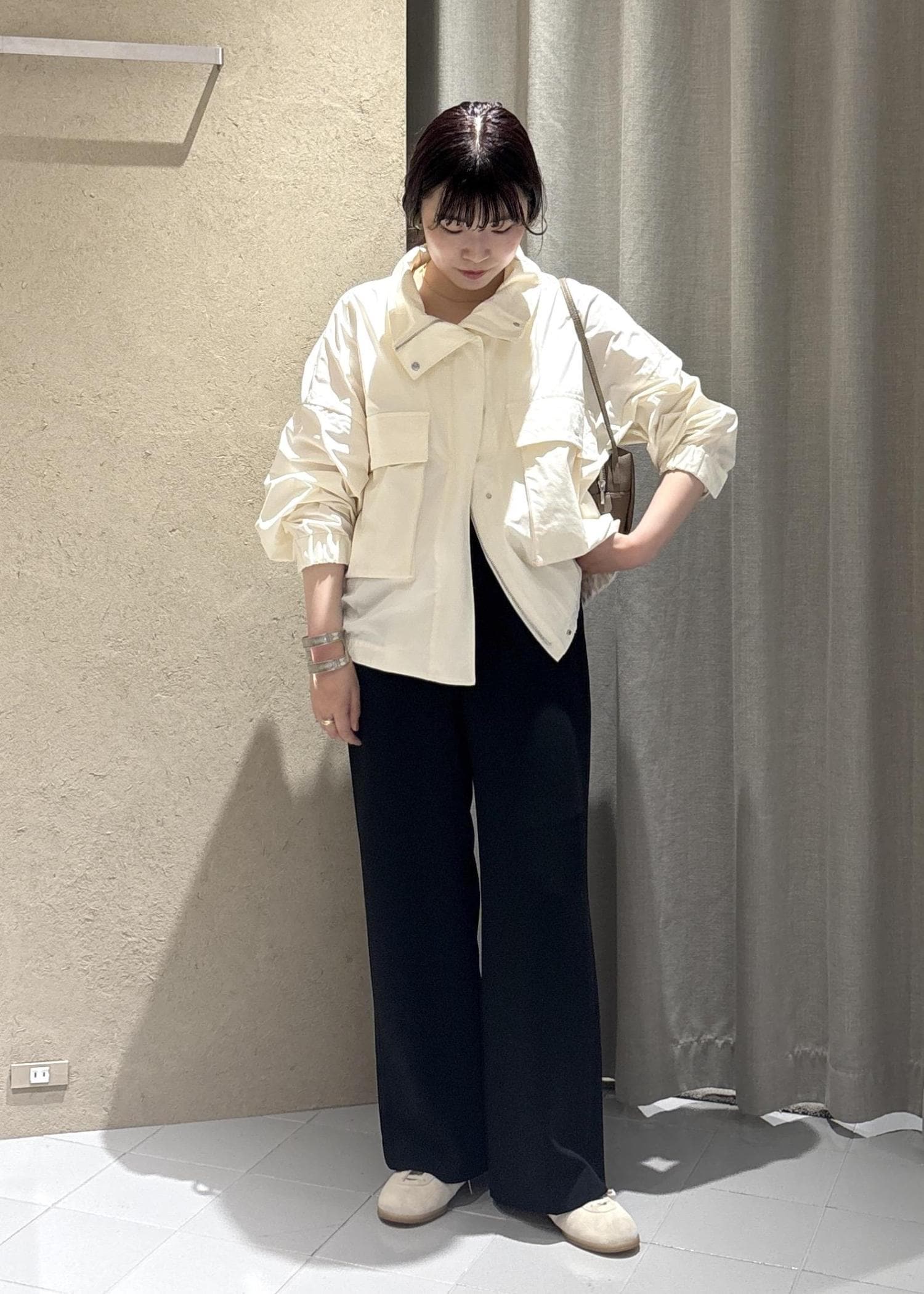 SALON adam et ropéリモンタナイロン / スタンドカラーブルゾンオフホワイト / F¥39,600レビューとっても軽いです!生地もしっかり丈夫なのでスポーティすぎず、大人カジュアルなスタイリングにぴったりです。梅雨のシーズンでも使いやすいです◎