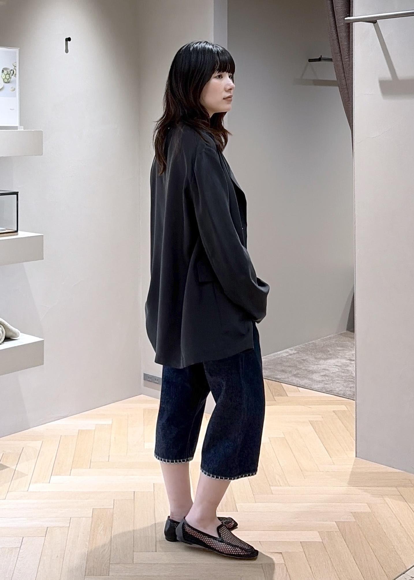 SALON adam et ropé[26SS]GENTLE SILK ジャケット / セットアップ対応・洗えるブラック / F¥42,900レビュー【サイズ感】