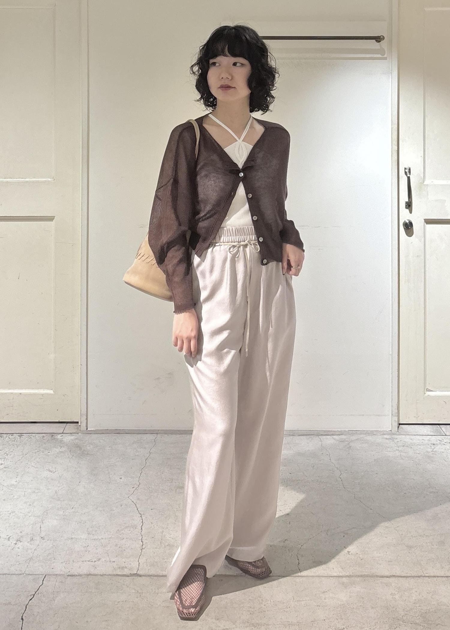 透け感はしっかりあるので、中はタンクトップやカップ付きのキャミがおすすめです。 -