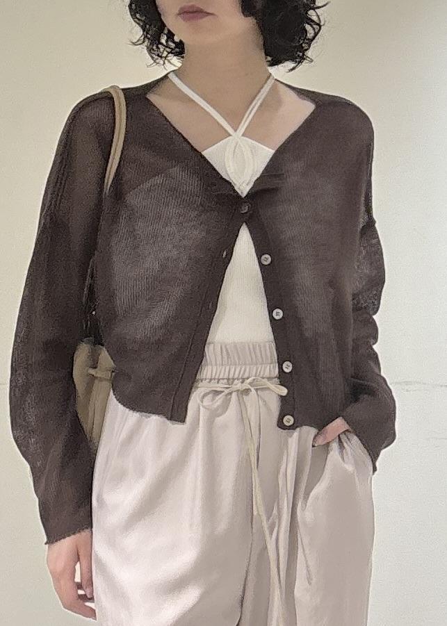 軽やかで夏まで着られるオールリネンのシアーカーディガンです。
