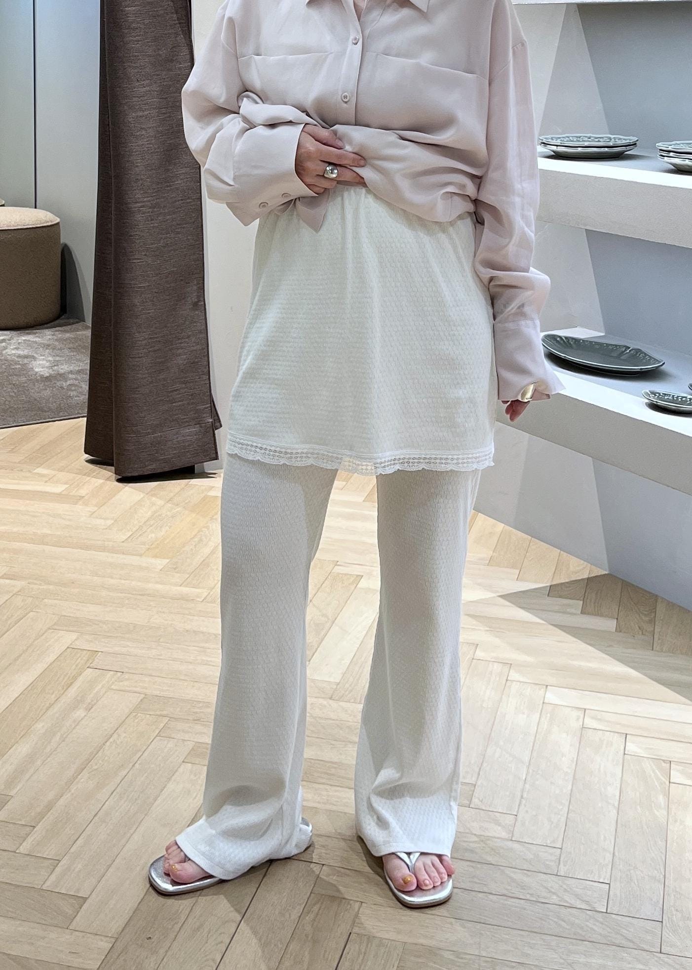 SALON adam et ropé【Angie La La for SALON】GENTLE intimate レギンススカートホワイト / F¥19,800レビュー152cm、ぺたんこ靴だと床に付きます。