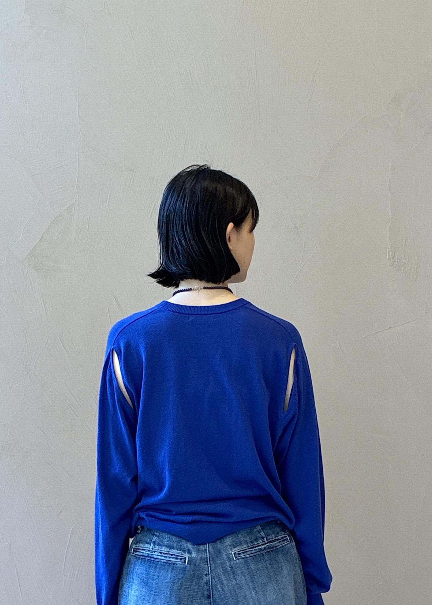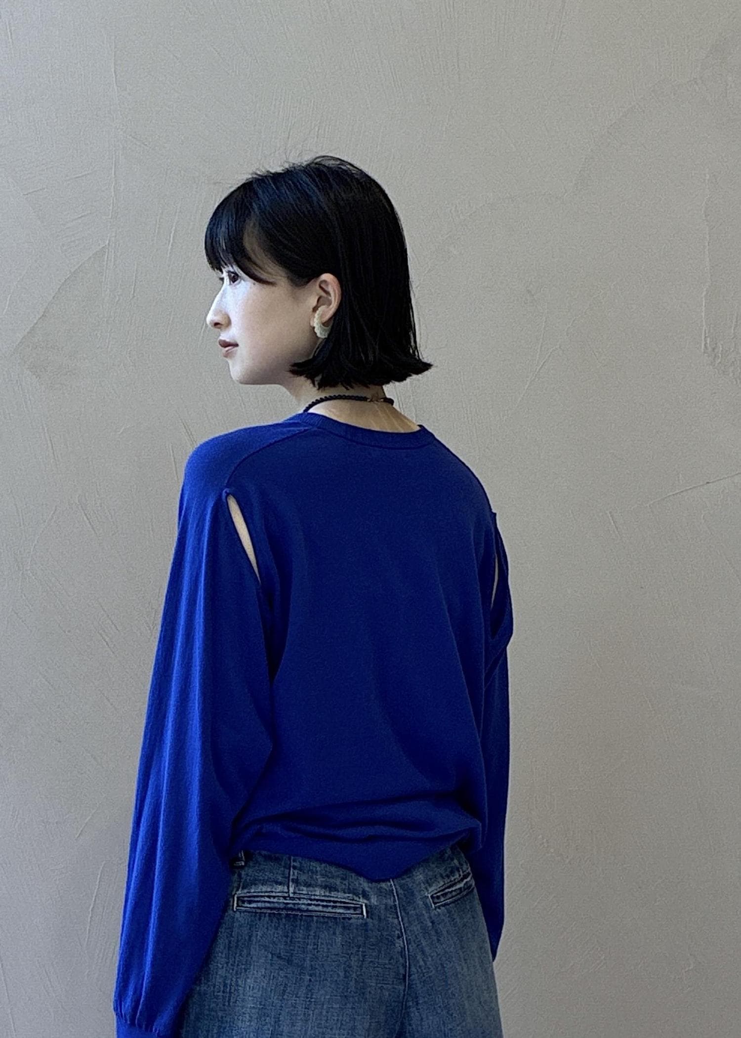 SALON adam et ropé【WEB・一部店舗限定】2WAYスリットニットプルオーバーブラック / F¥16,500レビュー背中側の肩下にスリットが入っていて肌見せデザイン。腕を抜いてノースリーブにもなる変形デザイン。