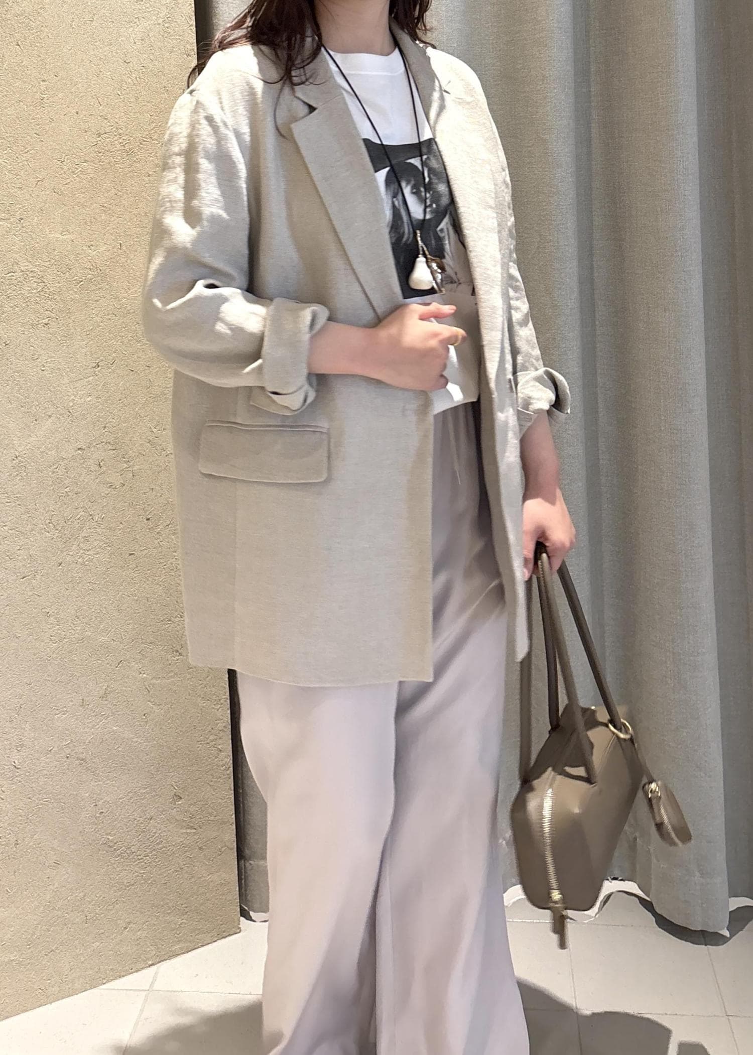 春先から初夏まで羽織れるリネン素材のジャケット。